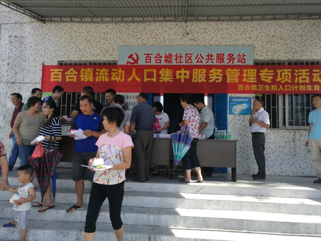为巩固完善流动人口管理和服务工作,推进基本公共卫生计生服务均等化,6月26日上午,百合镇卫计局联合百合卫生院在百合圩居委会门口开展流动人口集中服务专项活动。