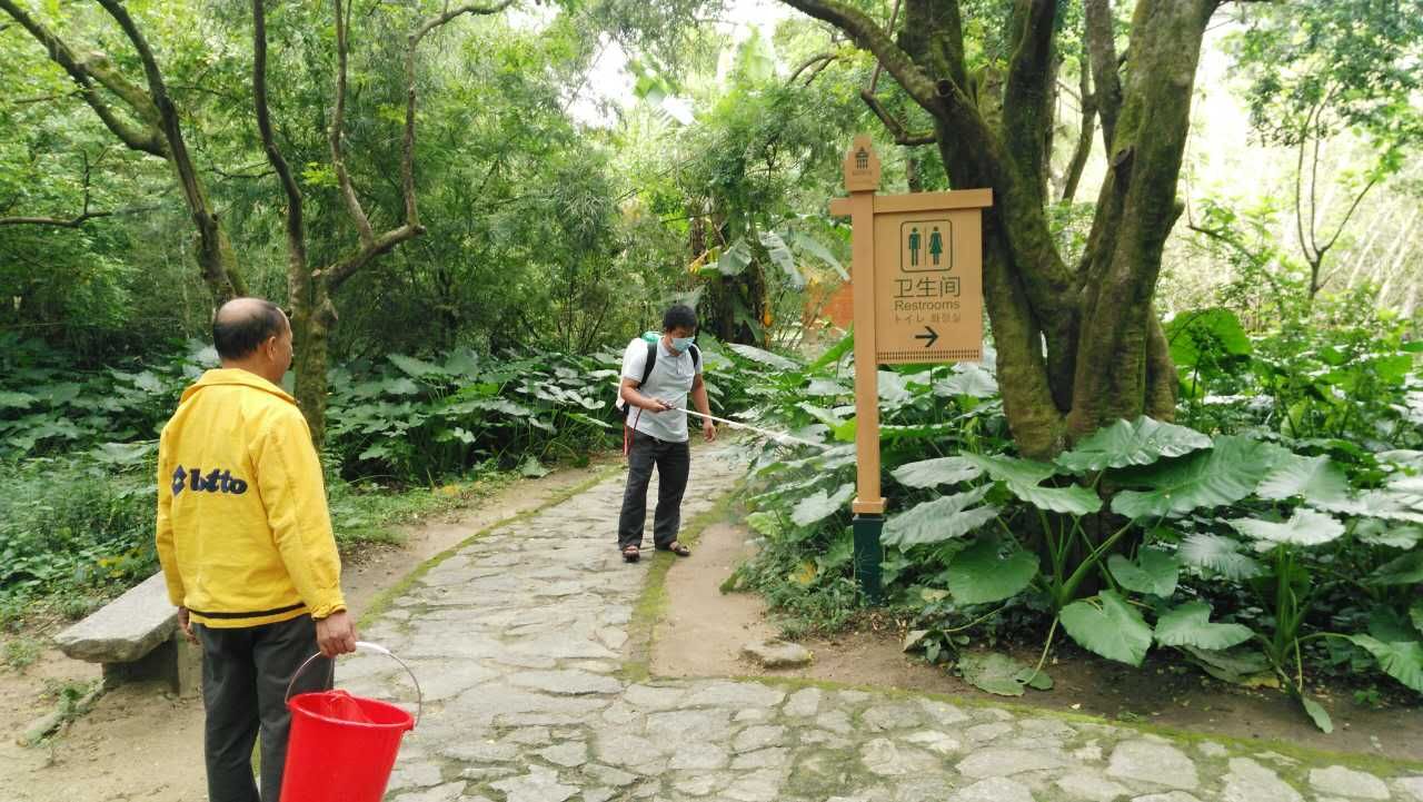 工作人员对景区内公共场所、小容器积水、花圃等蚊虫易孳生地进行地毯式消杀。同时还发动居民群众清理房前屋后露天闲置的各类储水容器,更换各自家居水养动植物容器里的水。