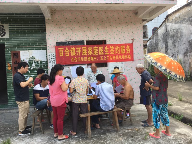 为给百合镇广大群众提供更贴心、更便捷的医疗服务,从7月31日开始,我镇卫计局联合百合卫生院组织家庭医生签约服务团队进村入户,在辖区内全面开展家庭医生签约服务工作,为重点人群进行健康体检和随访服务,为签约村民提供基本医疗、基本公共卫生服务和健康评估等。