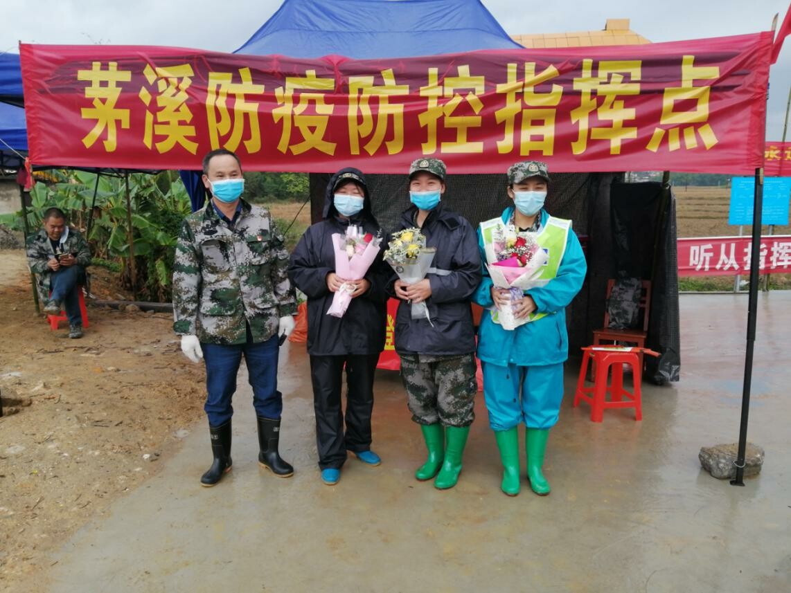 今天,茅溪党支部书记周仕柏准备了三扎花束,送给坚守在前线的美丽的巾帼义工队,把爱献给最有情义的人!