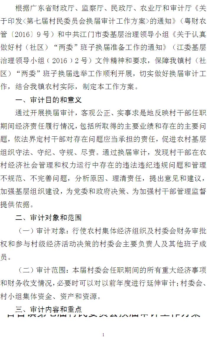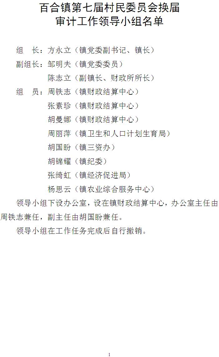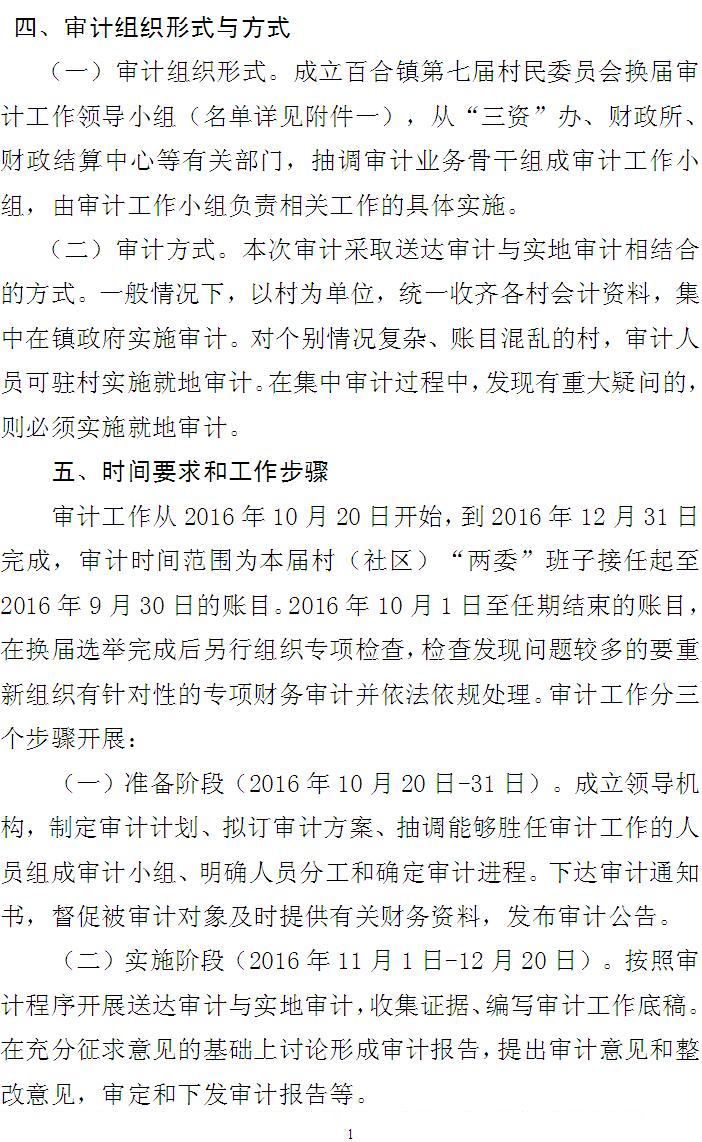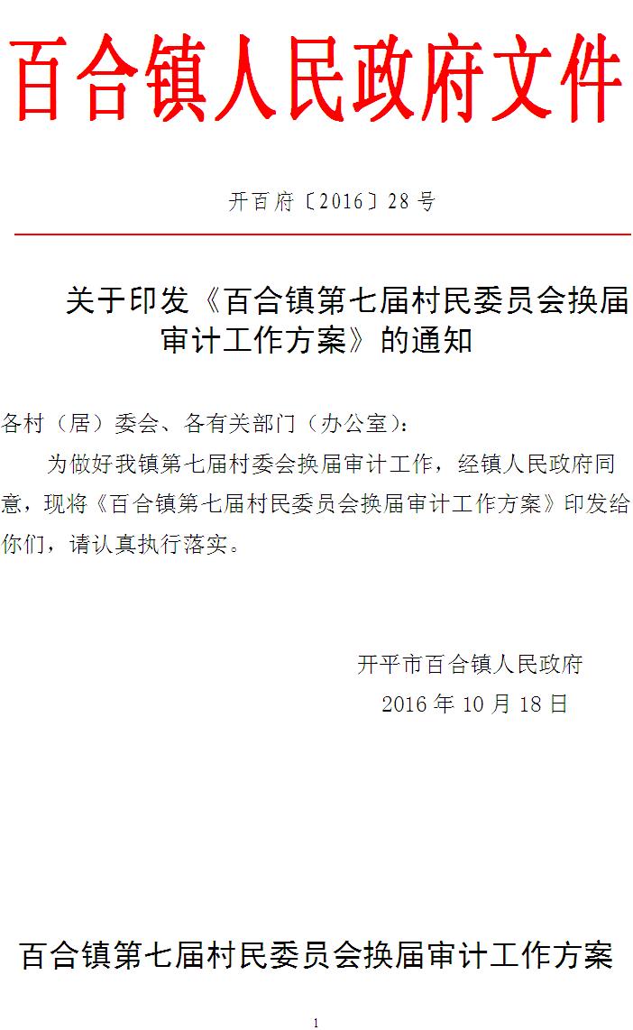 关于印发百合镇第七届村民委员会换届审计工作方案的通知