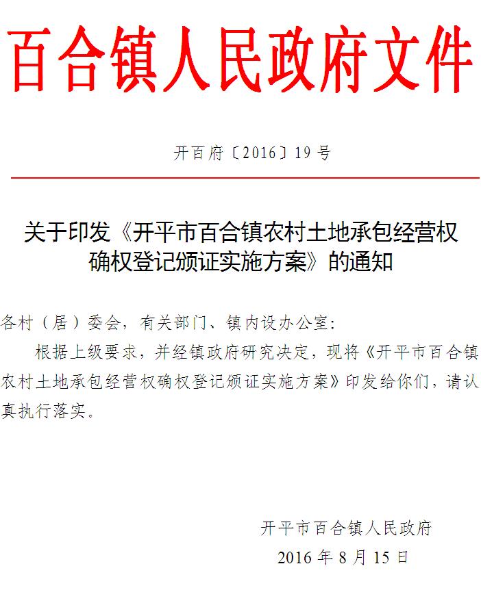 附件:一、亚星官网 百合镇农村土地承包经营权确权登记颁证工作领导小组名单