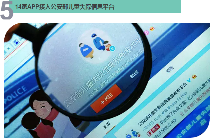 11月16日,公安部“儿童失踪信息紧急发布平台”二期上线。此平台可协助各地公安机关打拐民警即时发布各地儿童失踪信息,并自动推送到相关新媒体和失踪地周边一定范围内相关人群,让更多群众准确获取相关信息,提供失踪儿童线索,协助公安机关破获拐卖案件,尽快找回失踪儿童。二期新接入14家新媒体和移动应用,进一步扩大了平台信息发布渠道和范围。