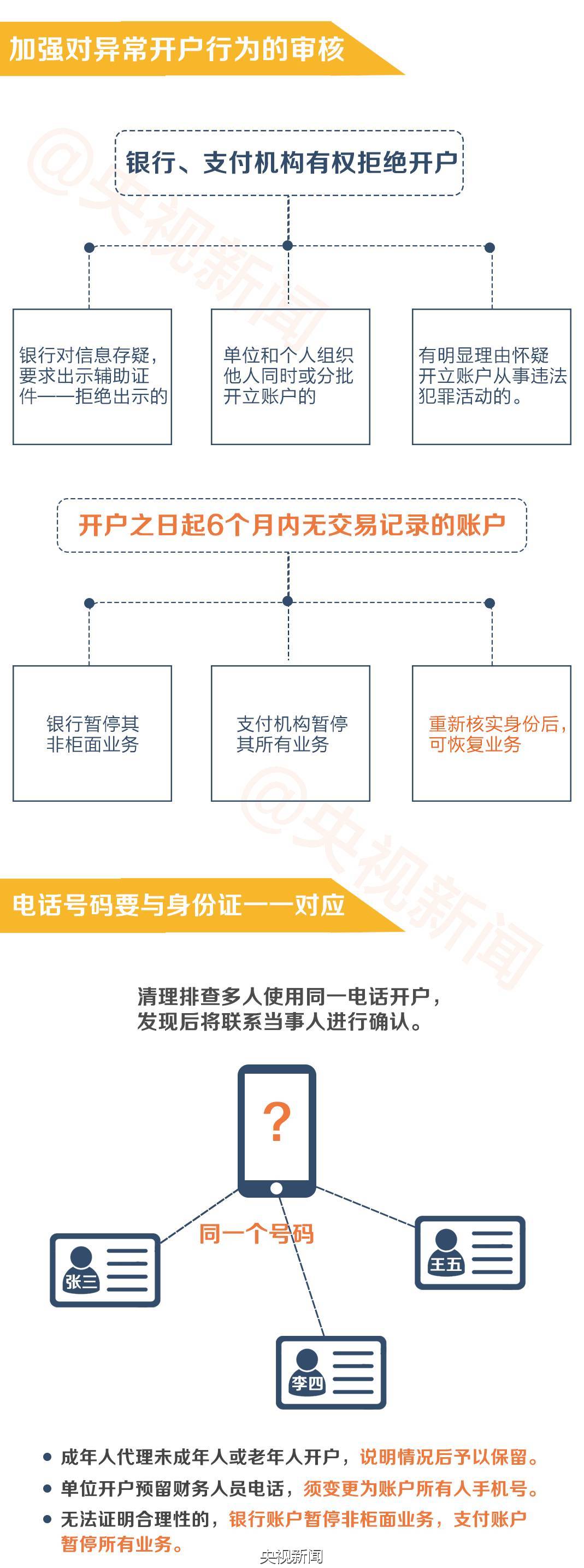 在央行出台的新规中,还规定对开户之日起6个月内无交易记录的账户,银行应当暂停非柜面业务,支付机构应当暂停所有业务,待单位和个人重新向银行和支付机构核实身份后,方可恢复业务。