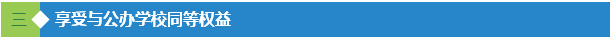 ● 权益——民办学校教师在资格认定、职务评聘、培养培训、评优表彰等方面与公办学校教师享有同等权利。非营利性民办学校教师享受当地公办学校同等的人才引进政策。民办学校学生在评奖评优、升学就业、社会优待、医疗保险等方面与同级同类公办学校学生享有同等权利。