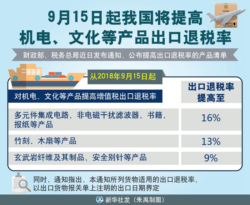 图表:9月15日起我国将提高机电、文化等产品出口退税率