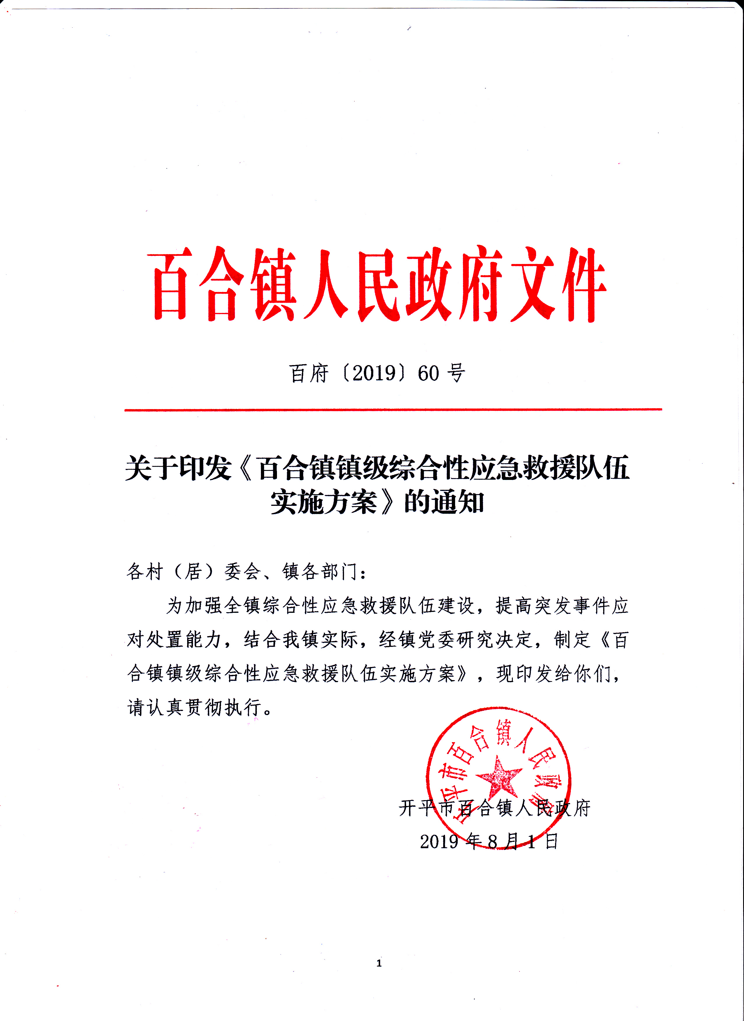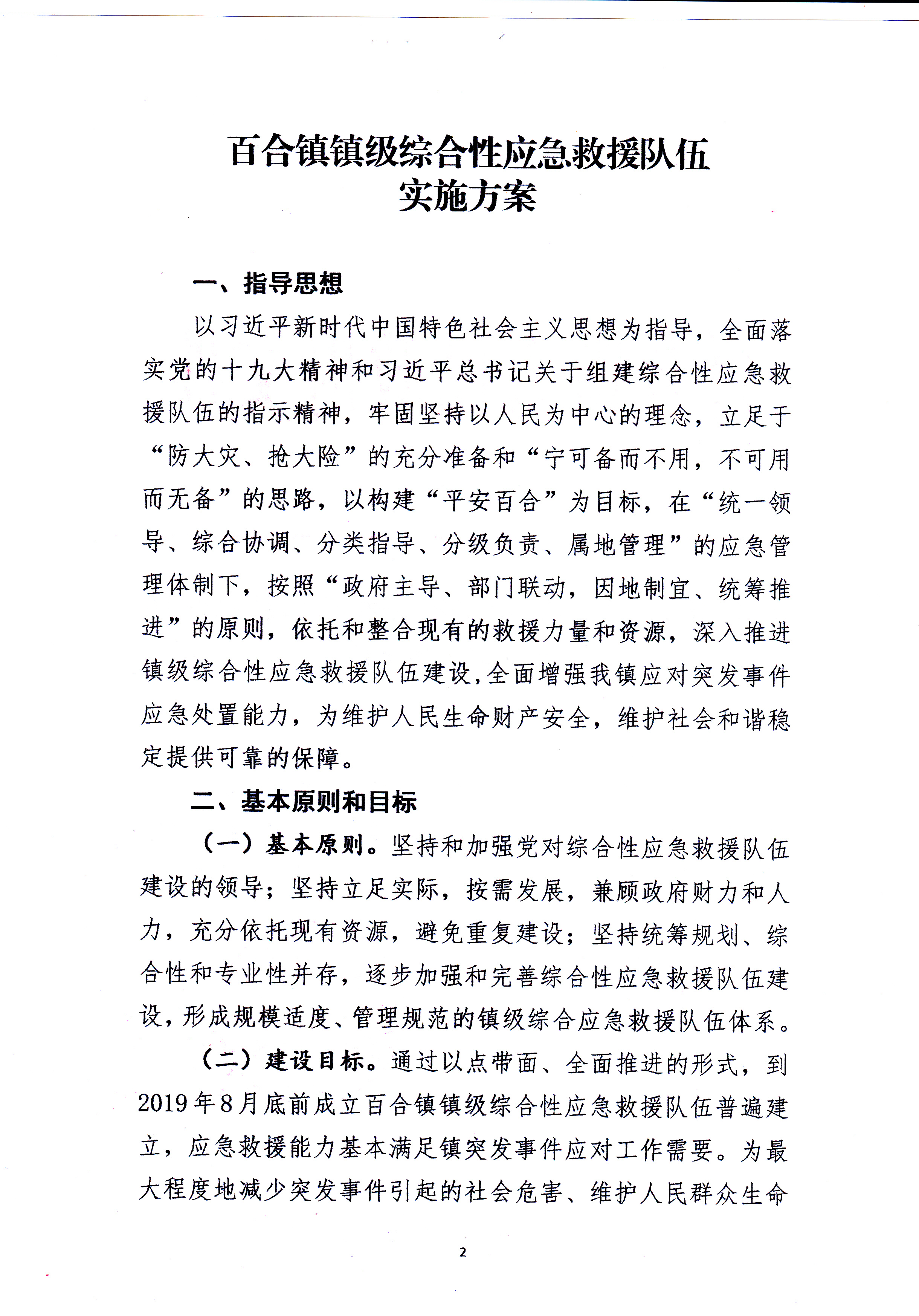 关于印发《百合镇镇级综合性应急救援队伍实施方案》的通知