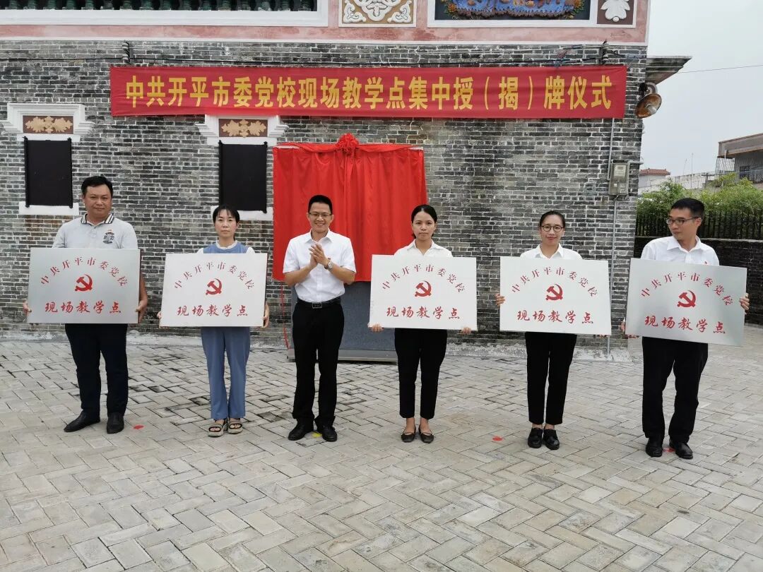 启动仪式向周文雍陈铁军烈士陵园、谢创故居、万隆客栈革命纪念馆、南楼纪念公园、司徒美堂故居、赤坎规划展示服务中心、塘口青年文创小镇、市党支部规范化建设实训中心、市玲珑医院、龙胜镇桥新村等10个第一批设立的现场教学点授牌,并为谢创故居现场教学点揭牌。
