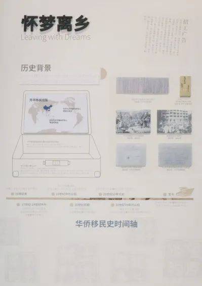 左侧墙体展示的分别是发生在十九世纪关于赤坎人怀梦离乡、远渡出国的移民热潮;百年来赤坎镇两大家族的氏族纷争,赤坎应运兴起的风云故事;以及那融合乡土美食的厚重,汇聚集华侨所到之处的各国美食的精华,属于赤坎本土的家乡味道。