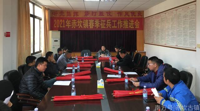 1月17日下午,赤坎镇召开2021年春季征兵工作推进会,要求认清春季征兵工作形势,迅速行动,抓紧搞好宣传发动报名压实责任,确保圆满完成今年春季征兵任务。赤坎镇党委委员、武装部长谭永健,全镇20个村(居)民兵营长参加了此次会议。