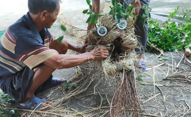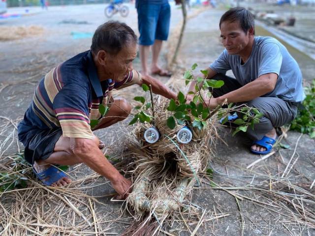 1、将扭扎好的龙身和榕树枝进行进一步的捆扎,神龙摆尾呼之欲出;