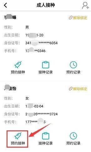02成人预约。成人接种可以绑定成人信息,首先点击【点此进入】按钮,进入成人接种界面。