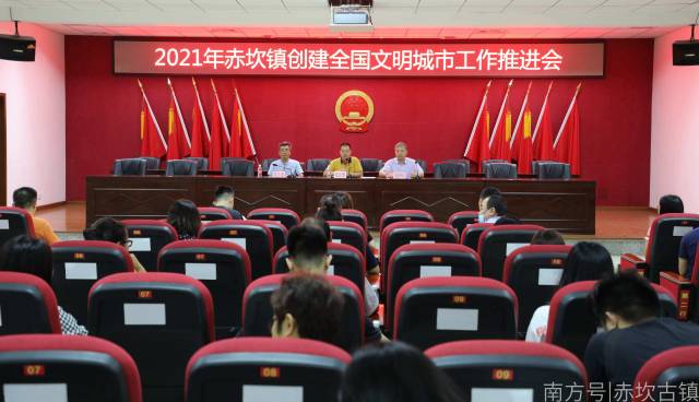 5月12日,赤坎镇召开创建全国文明城市工作推进会,对2021年文明城市创建工作进行再部署、再动员。赤坎镇领导梁志辉、司徒华业,镇政府部门负责人,中心学校、派出所、交警中队、供电,各村创文联络员等40多人参加会议。