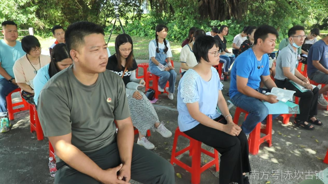 松柏郁郁葱葱、潭江缓缓流淌。为深入推进党史学习教育,5月17日上午,赤坎镇党(工)委在南楼举行了一场别开生面的党史专题党课。赤坎镇领导胡少波、梁志辉,司徒氏图书馆原馆长司徒亮先生,镇机关、村(社区)党员干部、入党积极分子,《南方日报》媒体记者等40多人齐聚在榕树下听党课,重温革命岁月,传承革命精神。