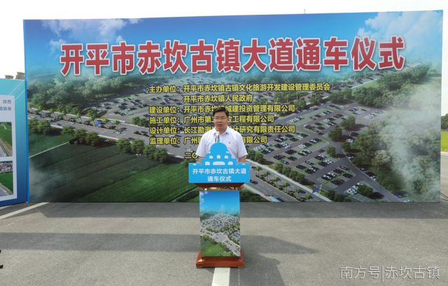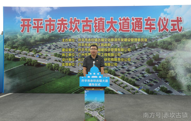 通车仪式上,赤坎古镇党工委副书记、赤坎镇党委副书记、镇长梁杰钊介绍了古镇大道概况。