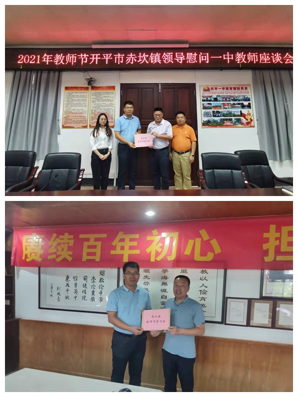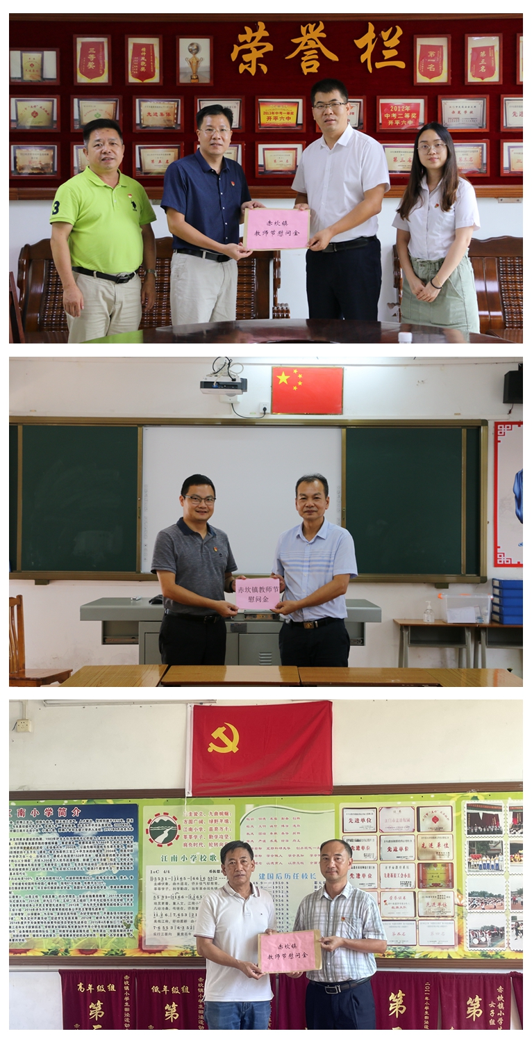 在第37个教师节即将来临之际,近日,赤坎镇有关领导分别到学校开展慰问,并了解各校办学情况,向学校送上慰问金,致美好的节日祝福,营造了全社会尊师重教的良好氛围。