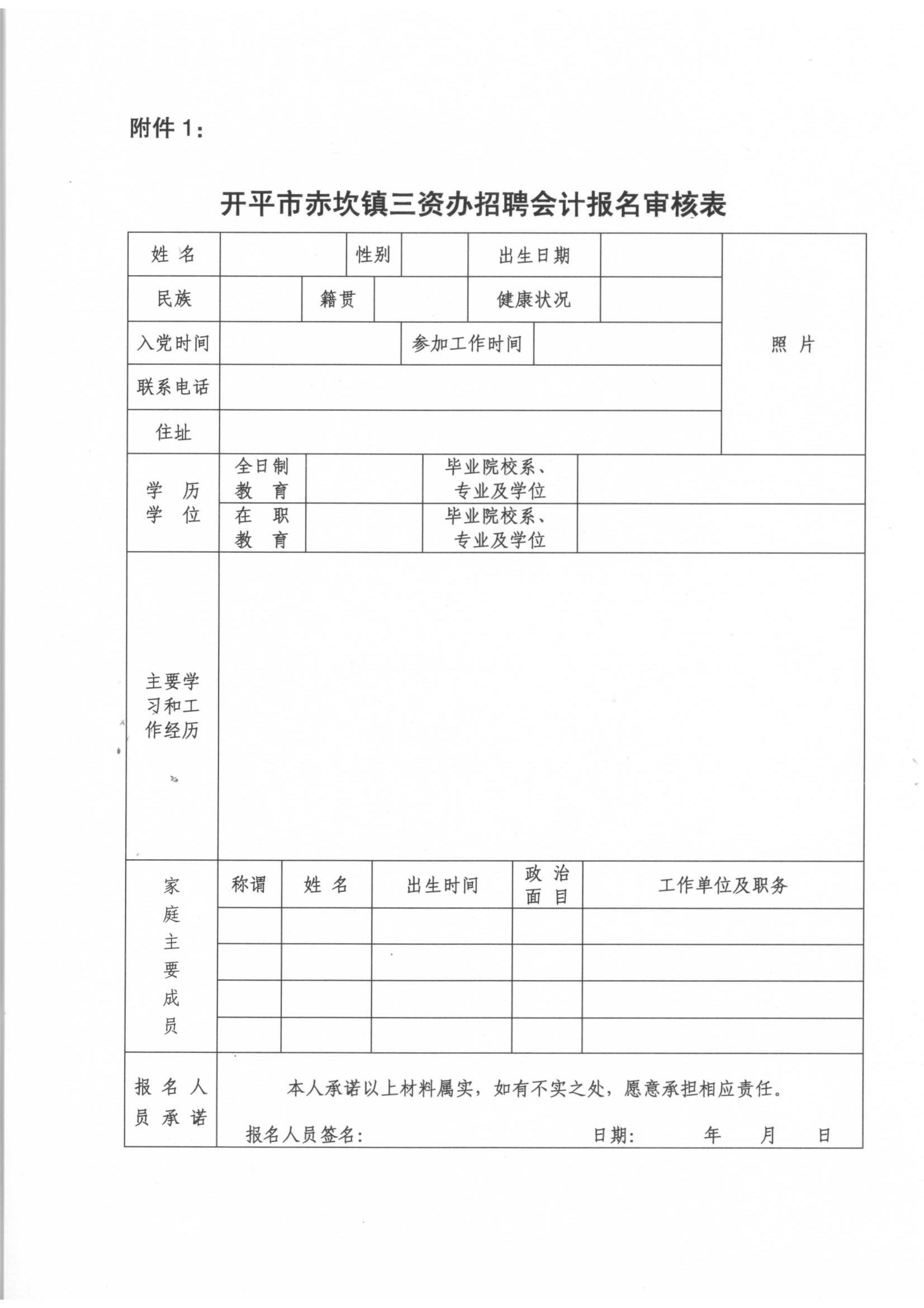 亚星官网 赤坎镇三资办招聘会计报名审核表.doc