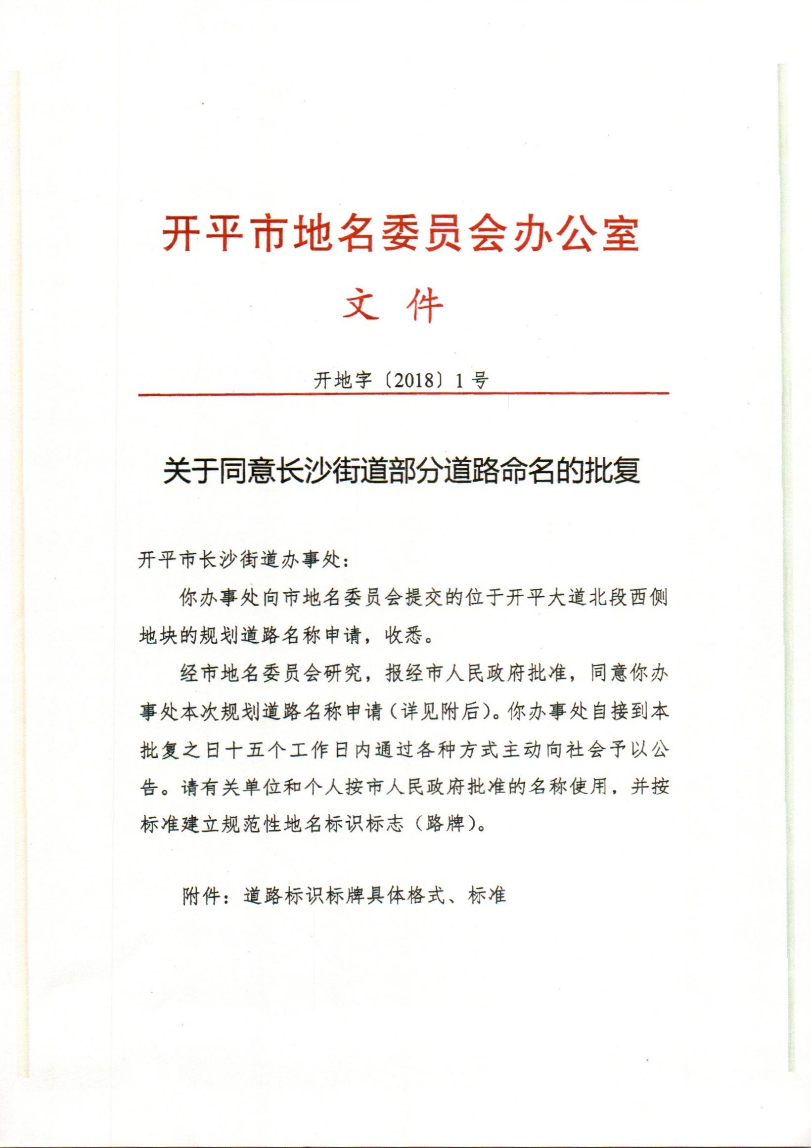 道路命名的公告