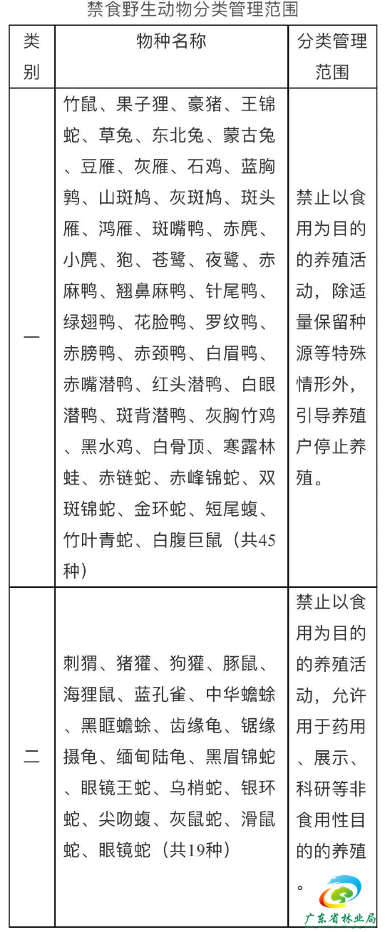 国家林草局近日发布通知,明确对64种在养禁食野生动物分类管理。其中,竹鼠、果子狸、豪猪等45种野生动物,今年12月底前要引导停止养殖刺猬、豚鼠、眼镜蛇等19种野生动物,允许非食用目的的养殖。 据了解,这是自今年2月份全国人大出台禁食野生动物相关决定以来,国家主管部门首次明确划出禁养的野生动物物种范围。 通知明确,其所指的禁食野生动物是《全国人民代表大会常务委员会关于全面禁止非法野生动物交易、革除滥食野生动物陋习、切实保障人民群众生命健康安全的决定》发布前养殖食用、不属于畜禽范围的陆生野生动物,不包括水生野生动物和以保护繁育、科学研究、观赏展示、药用、宠物等为目的的陆生野生动物。 通知要求,对竹鼠、果子狸、豪猪、王锦蛇、草兔、东北兔、蒙古兔等45种野生动物,禁止以食用为目的的养殖活动,引导养殖户在2020年12月底前停止养殖活动,并按有关规定完成处置工作。确需适量保留种源用于科学研究等非食用性目的的,要充分论证工作方案的可行性,并严格履行相关手续。 对刺猬、猪獾、豚鼠、海狸鼠、蓝孔雀、中华蟾蜍、眼镜蛇等19种野生动物,禁止以食用为目的的养殖活动,但允许用于药用、展示、科研等非食用性目的的养殖。各地主管部门要会同有关部门分类制定管理措施和养殖技术规范,强化日常监督管理,严格落实防疫检疫相关要求。 有专家认为,此次由主管部门明确对禁食的野生动物分成两大类管理,是对此前全国人大出台的禁食野生动物决定的细化,将更好地指导地方政府引导养殖产业良性地转产转型。 但专家也表示,对于允许非食用性目的养殖的第二类19种野生动物,相关部门应该谨防借药用、展示等名义用于食用的养殖行为,“这需要通过加强执法监督去堵住这个可能的‘洗白’漏洞,下一步,《野生动物保护法》的修改也应该更加明确如何规范管理野生动物的非食用用途。”