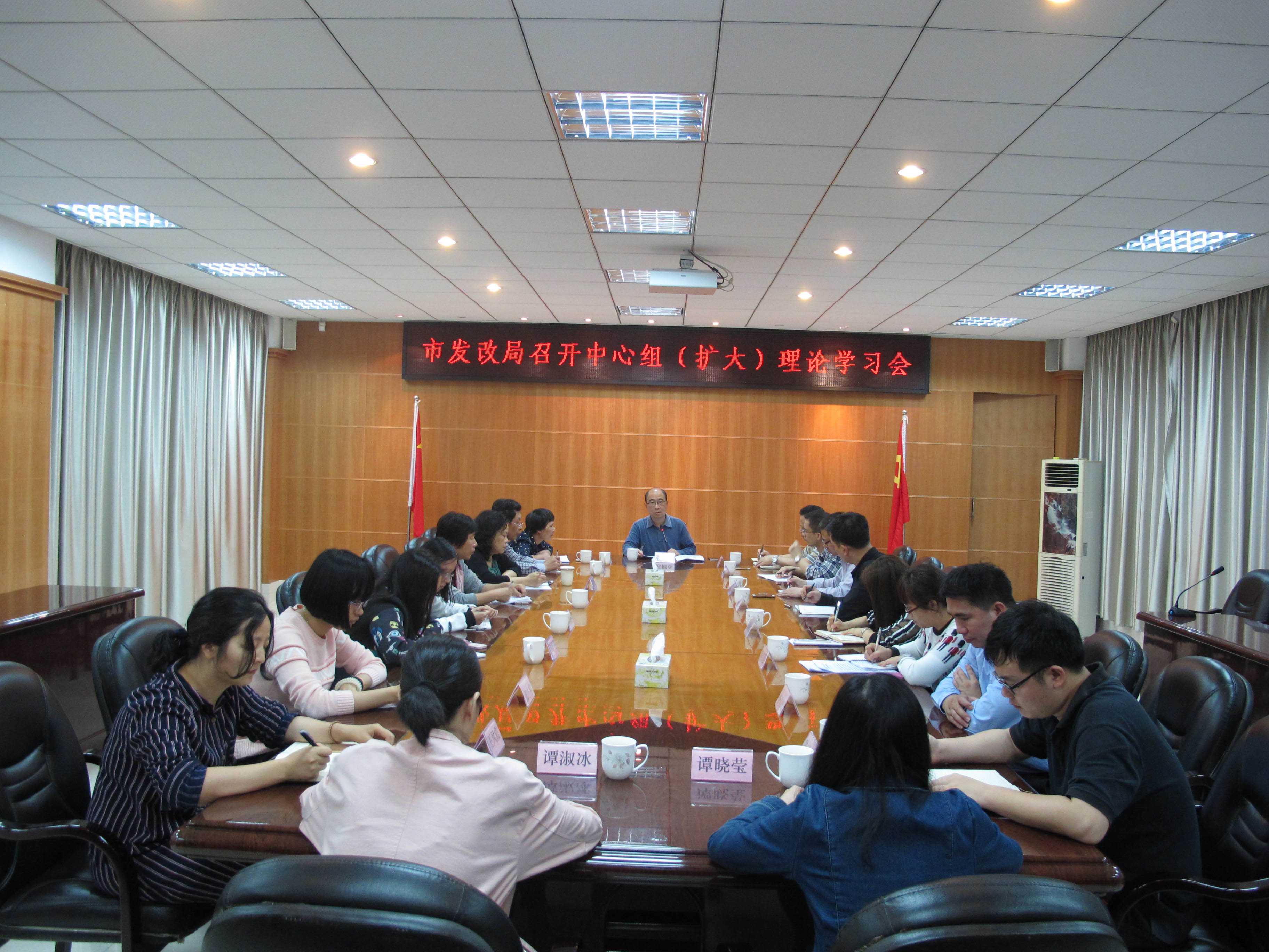 4月24日下午,市发改局党组书记、局长张健东同志主持召开市发改局中心组(扩大)理论学习会,专题学习贯彻习近平总书记对广东工作作出重要批示精神,以及传达省委、江门市委、亚星官网 委各级会议精神。局全体党员干部参加会议。