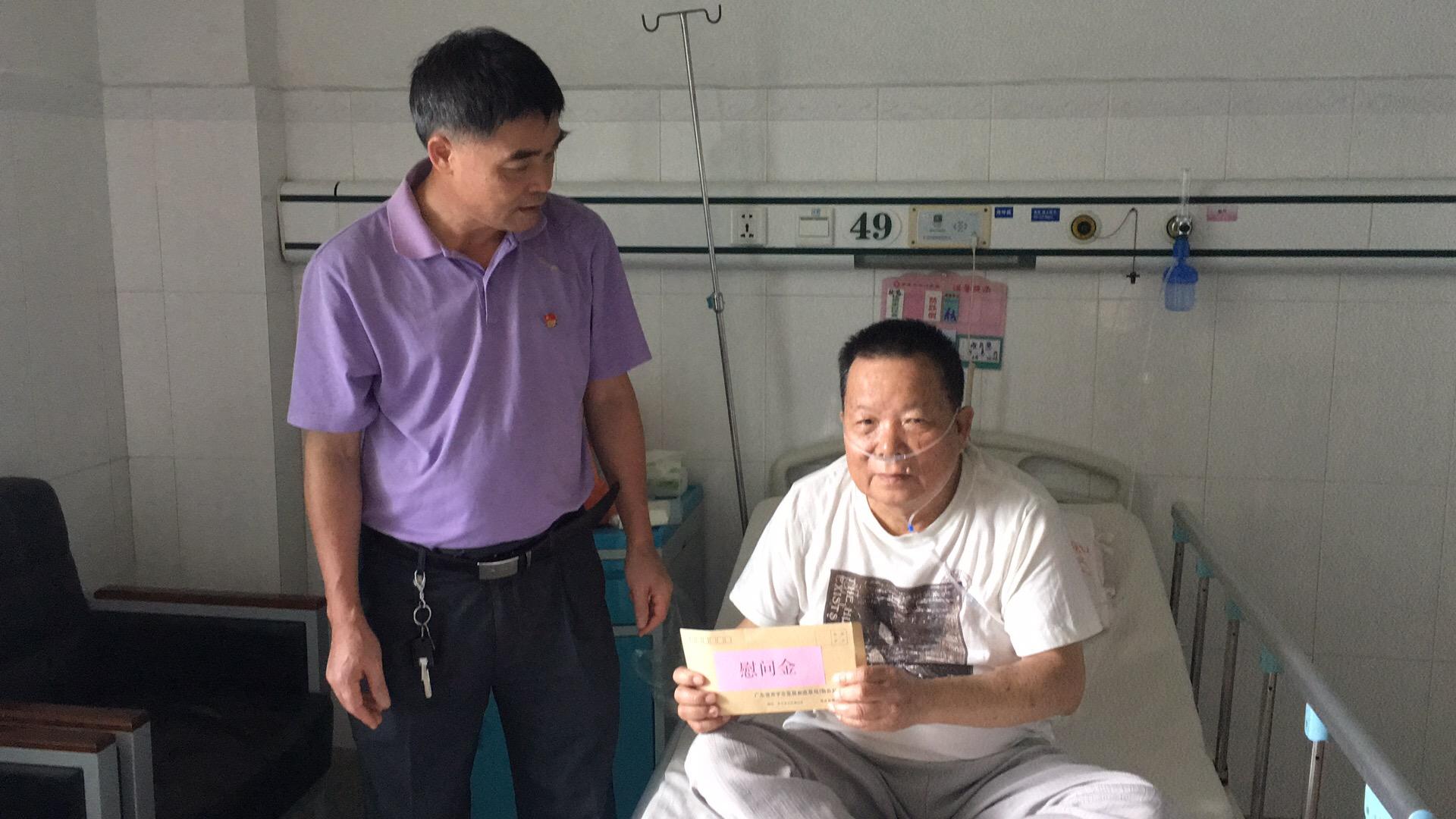 邓剑彬同志向困难党员张月想同志送上了“七.一”慰问金和慰问品,并详细了解他的身体和生活状况,鼓励其克服困难,积极治疗,早日康复。