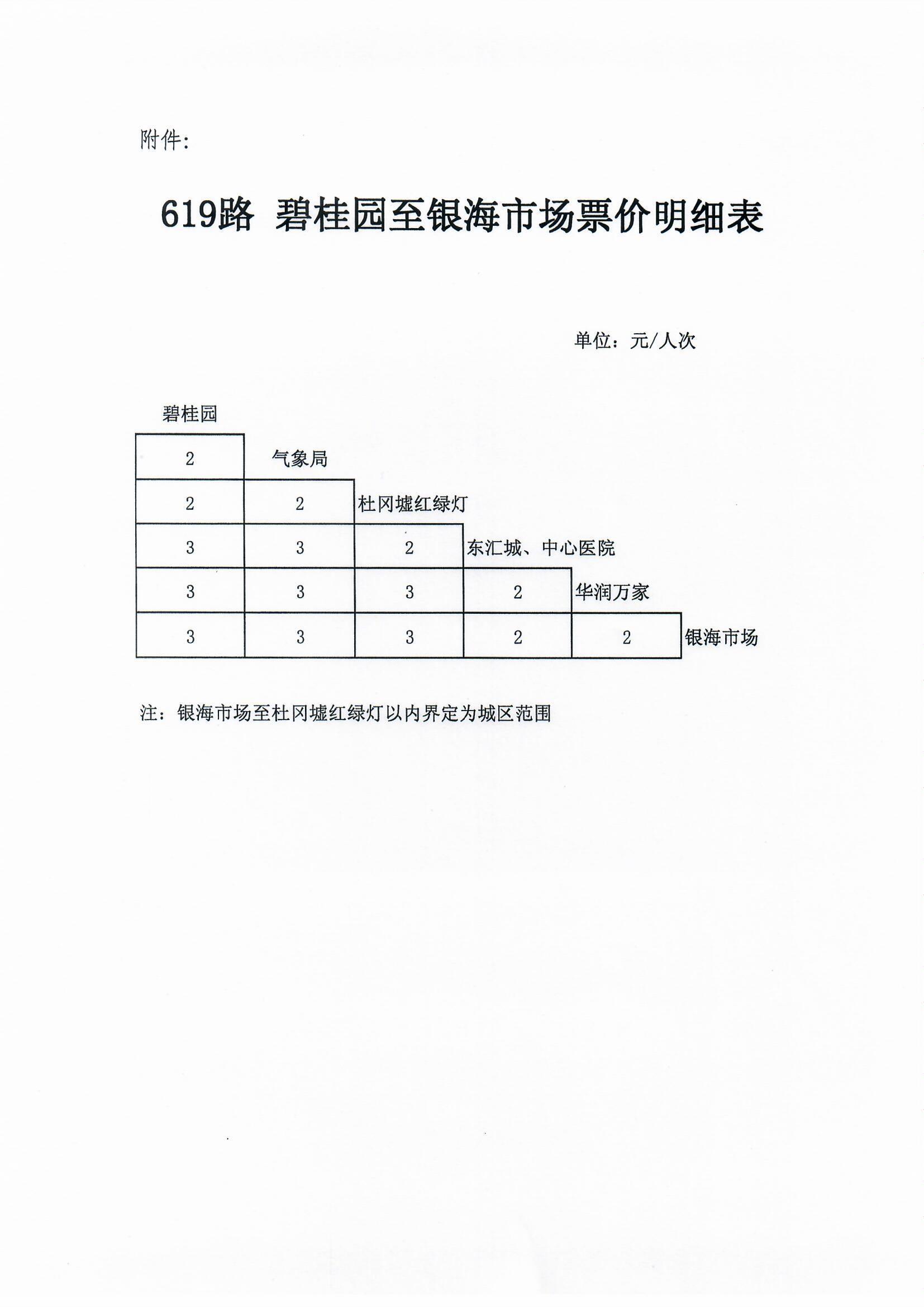 开发改价管〔2017〕9号 关于亚星官网 619路公交线路票价的批复
