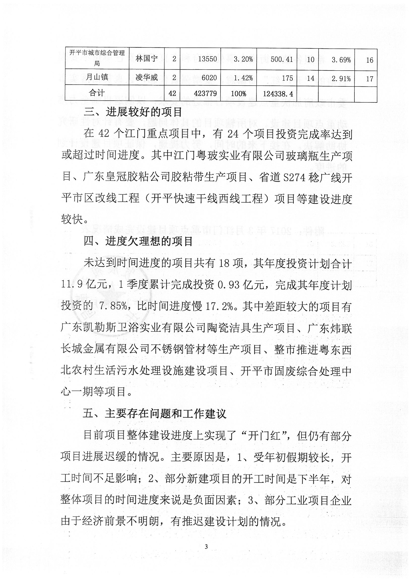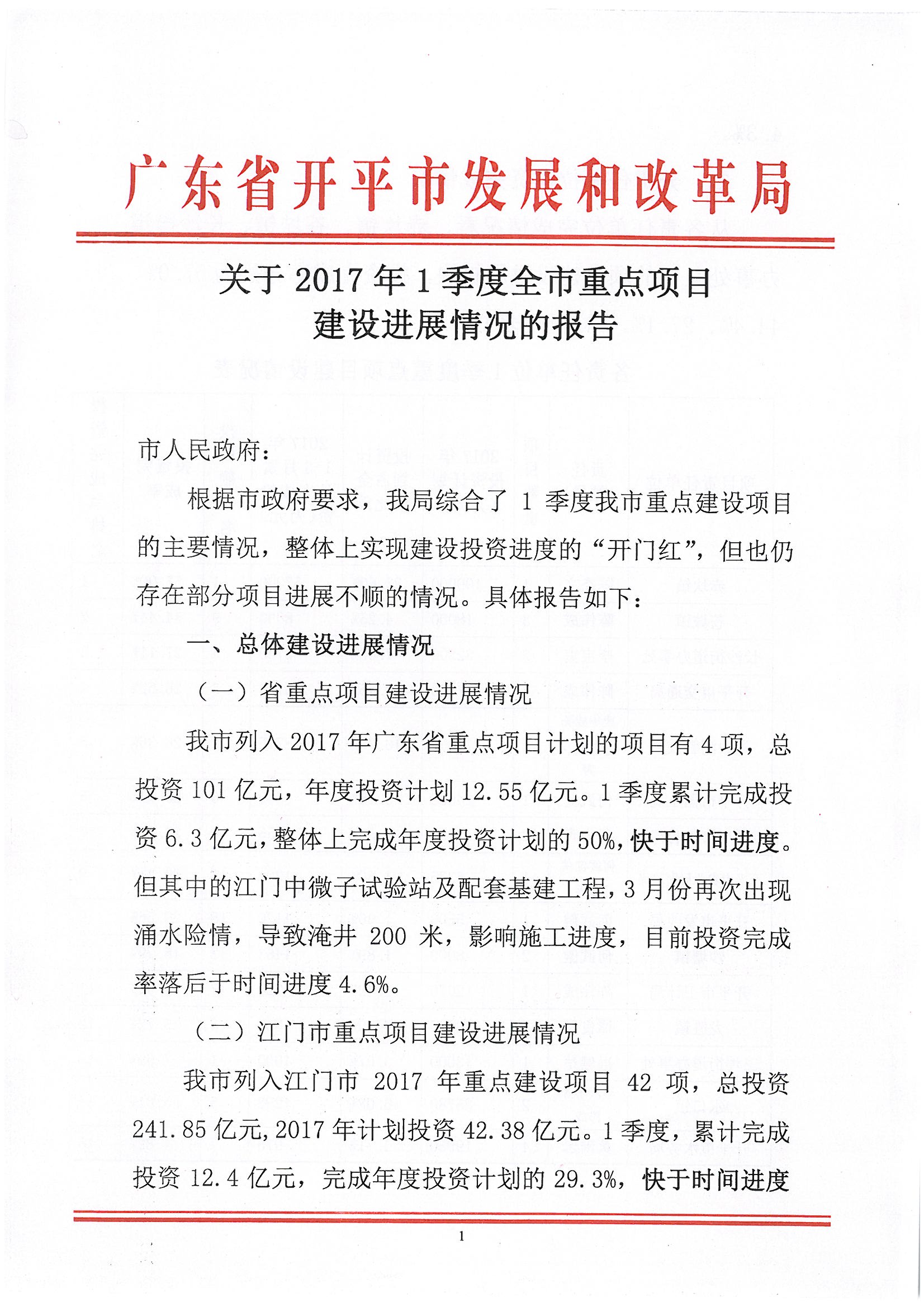 关于2017年1季度全市重点建设项目建设进展情况的报告