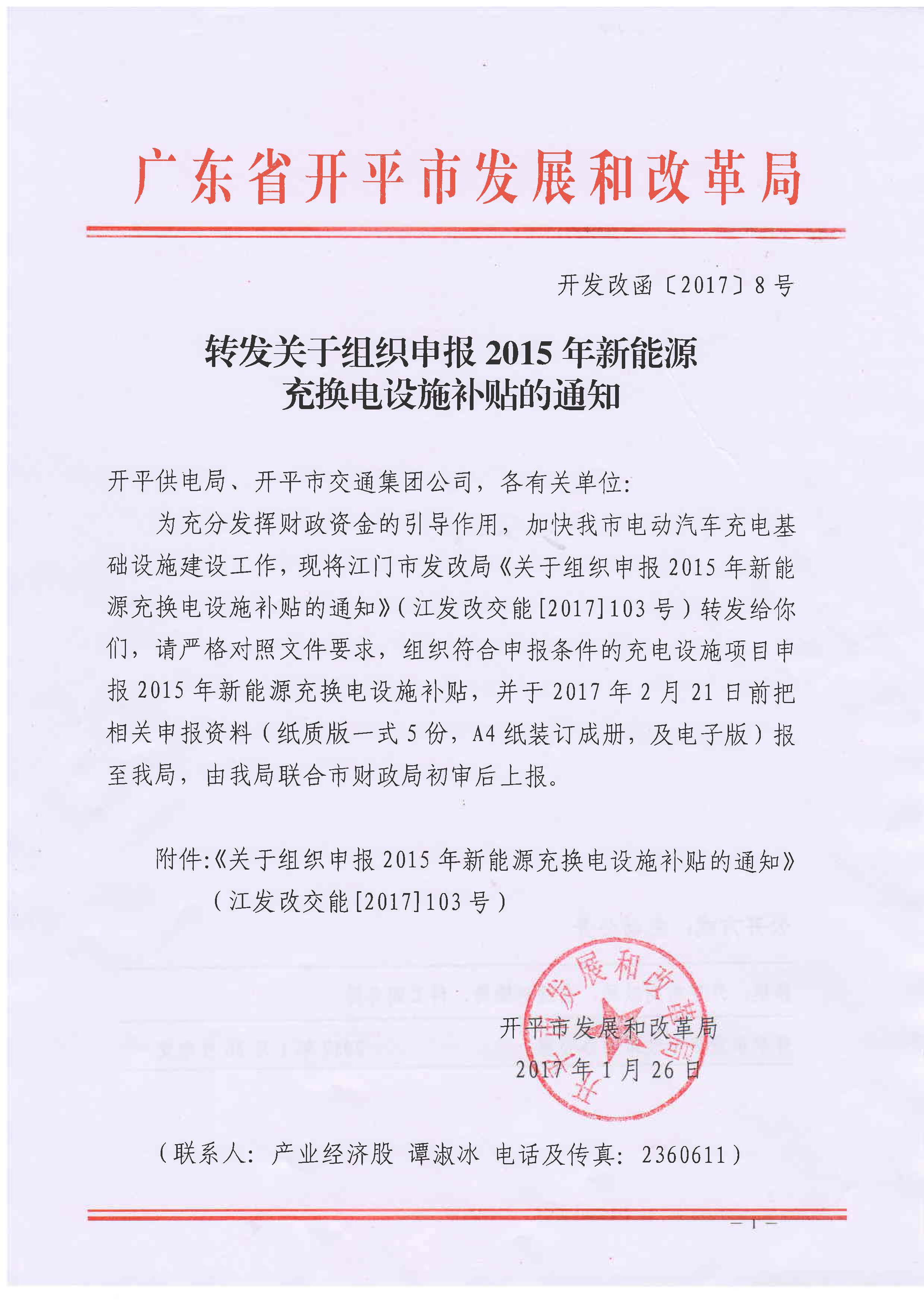 开发改函[2017]8号-关于组织申报2015年新能源充换电设施补贴的通知