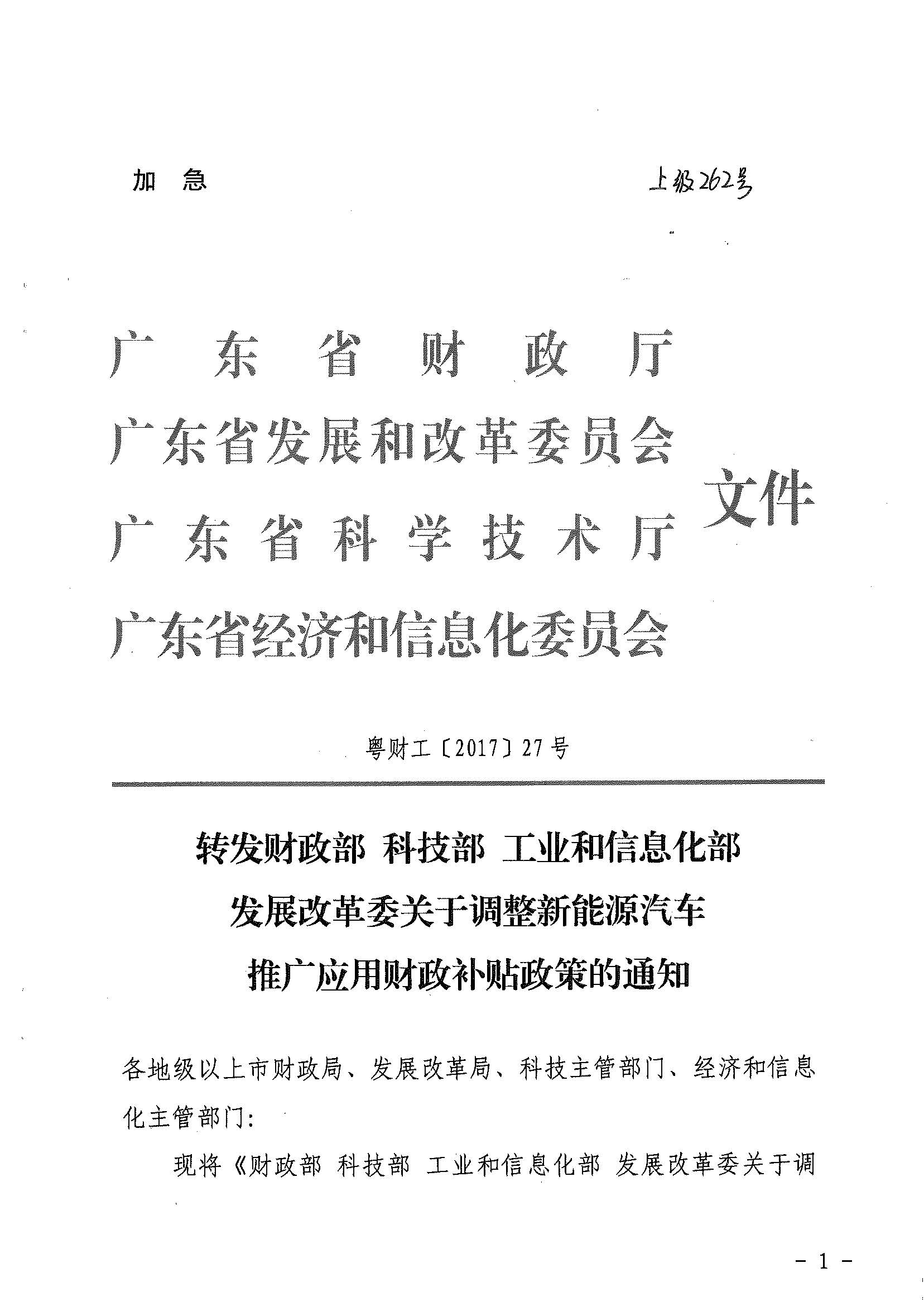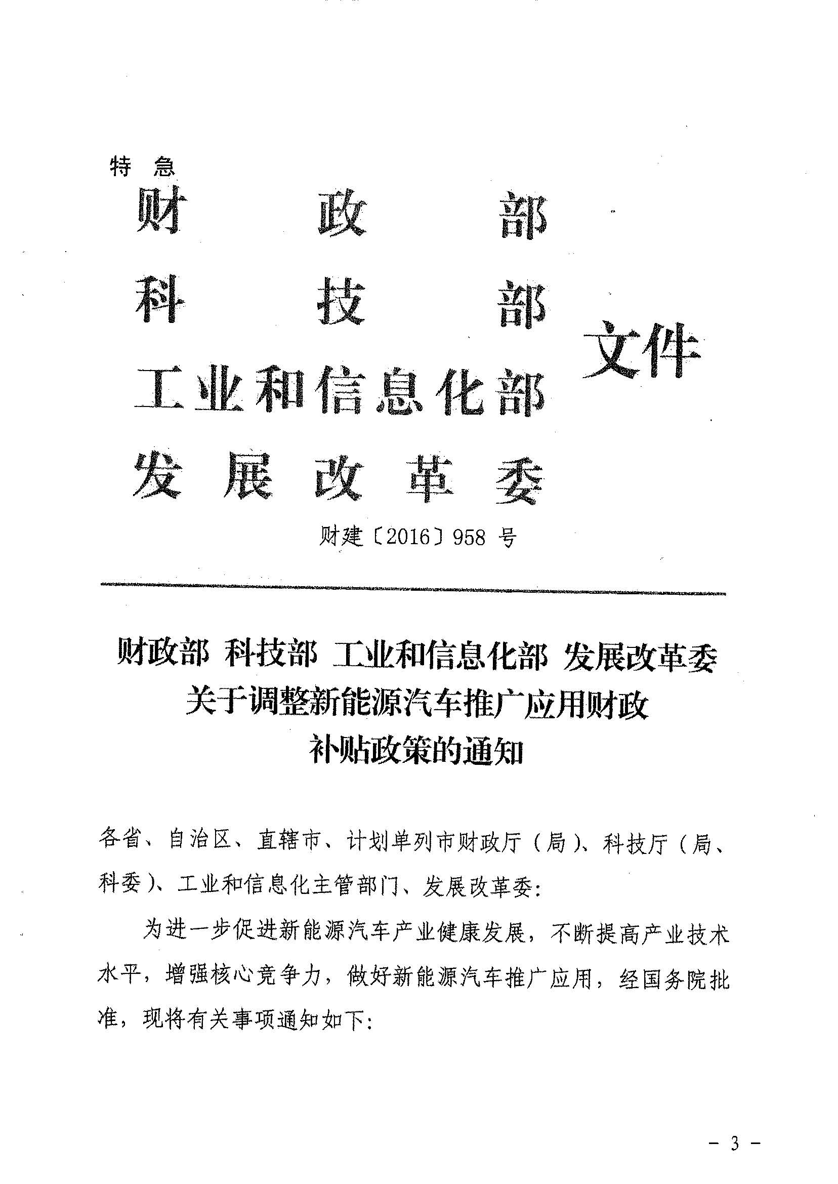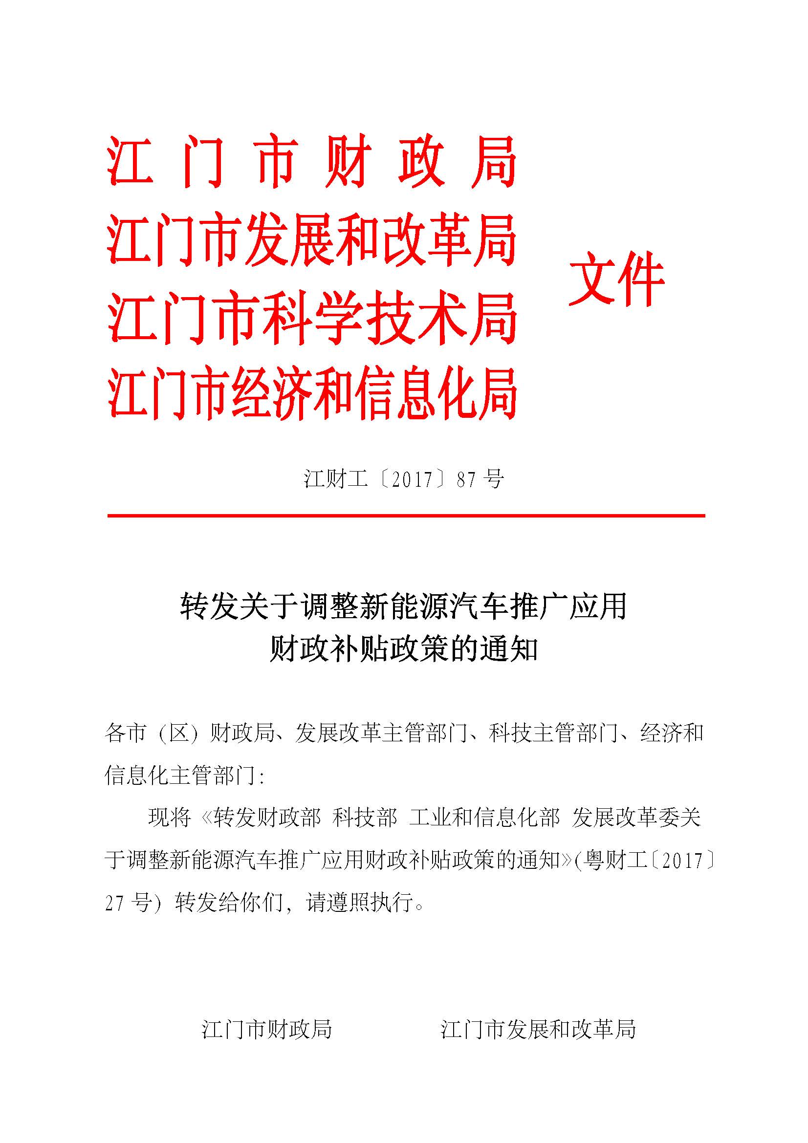 转发关于调整新能源汽车推广应用财政补贴政策的通知