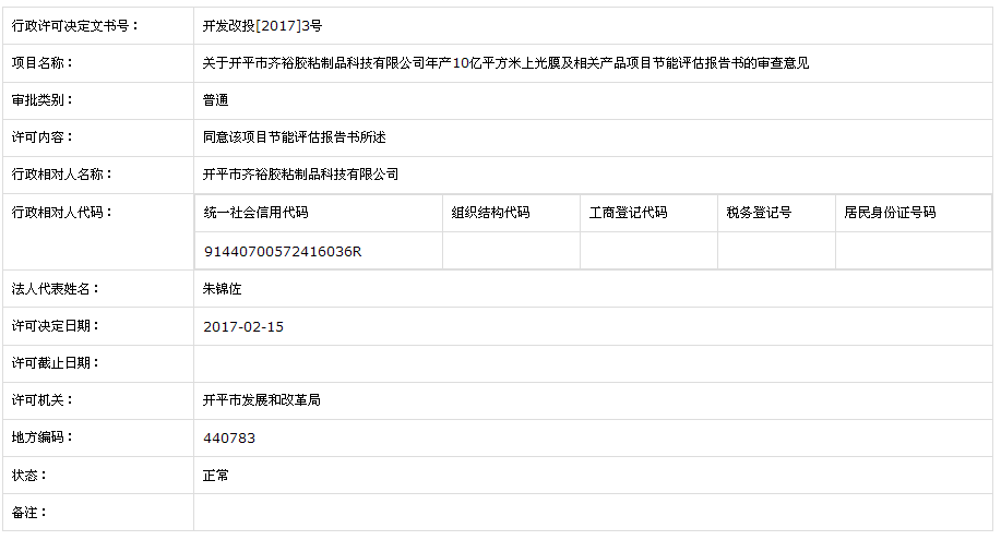 关于亚星官网 齐裕胶粘制品科技有限公司年产10亿平方米上光膜及相关产品项目节能评估报告书的审查意见