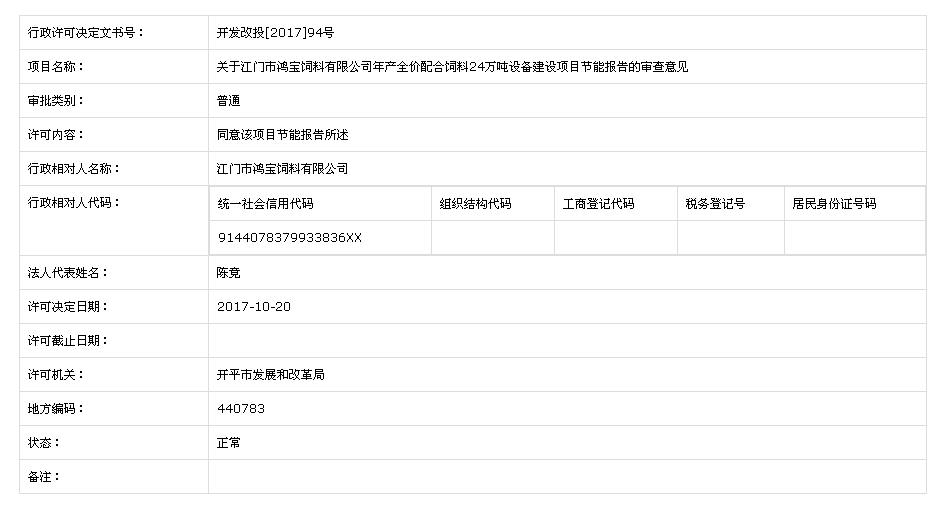 关于江门市鸿宝饲料有限公司年产全价配合饲料24万吨设备建设项目节能报告的审查意见