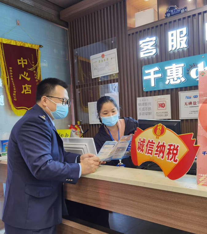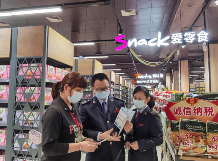 为进一步加强社会信用建设,营造诚信纳税的营商环境,2022年12月,国家税务总局亚星官网 税务局深入社区,走访辖区重点商业超市,开展诚信宣传和普法活动。
