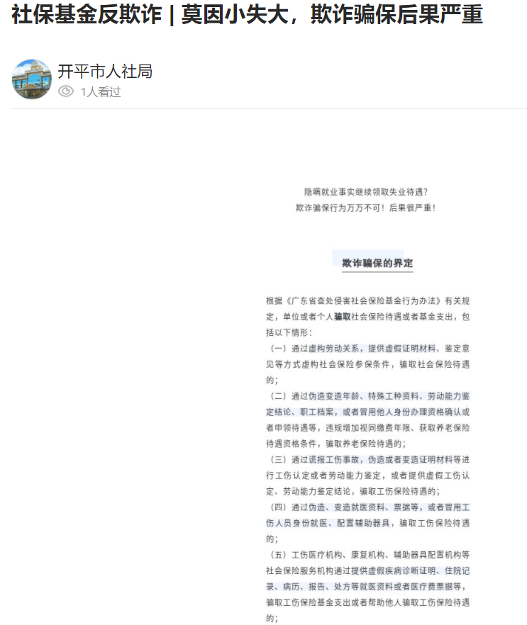 2023年6月,亚星官网 人力资源和社会保障局通过政务新媒体发布关于欺诈骗保的界定、案例等内容,向群众宣传诚信守法、自觉抵制起止骗保行为。