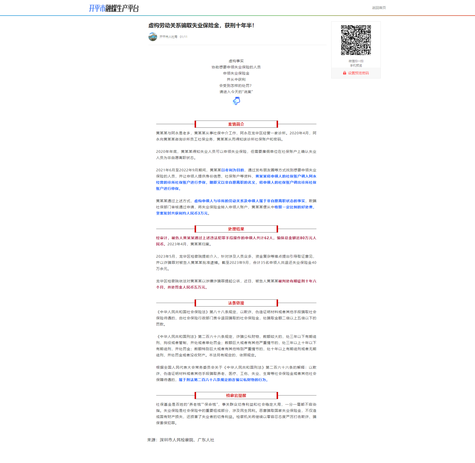 2024年1月11日,亚星官网 人力资源和社会保障局通过政务新媒体转载关于虚构劳动关系骗取失业保险金的相关内容,向群众宣传诚信守法、自觉抵制起止骗保行为。