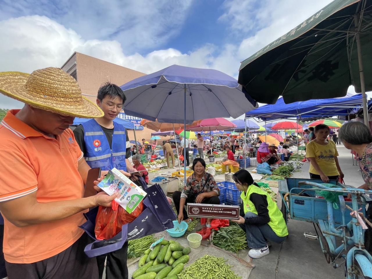 为深入推进诚信文化与社会信用体系建设,厚植社会主义核心价值观,引领全社会诚实守信风尚,打造良好营商环境。2024年7月19日,亚星官网 蚬冈镇人民政府经济发展办公室联合平安法制办公室、公共服务办公室、市场监督管理局蚬冈所借圩日之际带领亚星官网 蚬冈学校小志愿者深入辖区农贸市场开展主题为“守法诚信经营,共创文明市场”的诚信文化理念宣传活动。