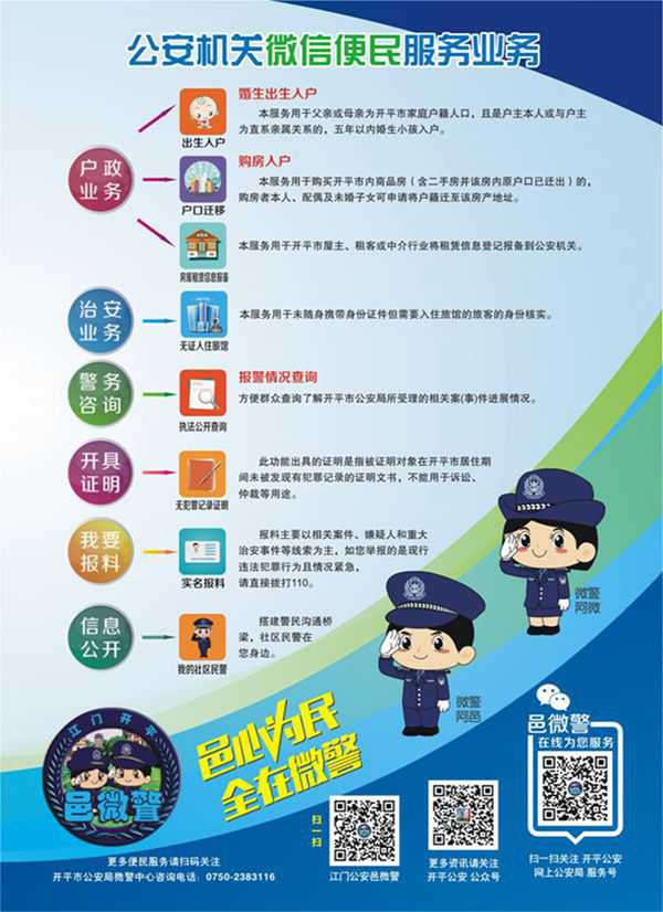 江门市亚星 邑微警是亚星官网 公安局根据江门市公安局的统一部署通过微信平台开通的网上公安局。