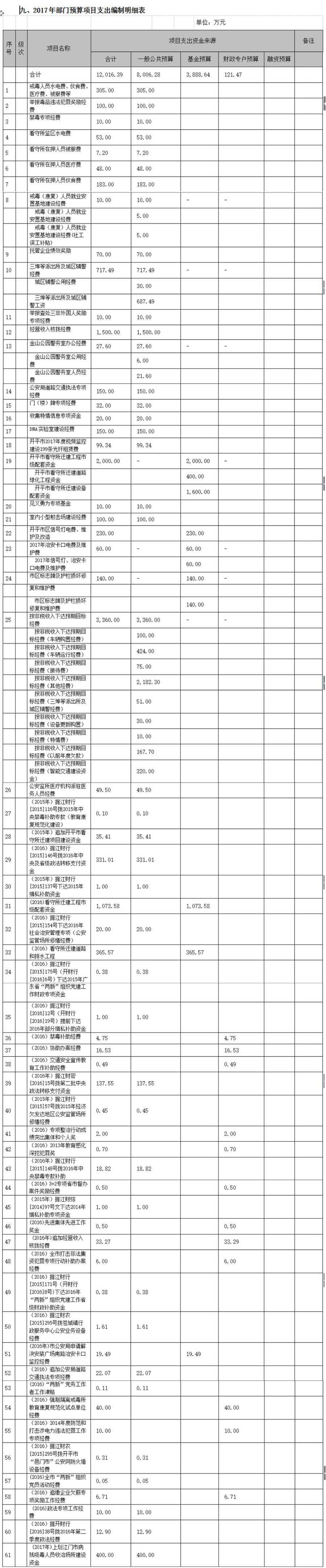 根据市委、市政府2017年的有关方针政策和事业发展目标,以及本部门的工作职能,确定了本部门2017年项目支出预算安排8656.39万元,其中,看守所迁建工程共预算支出3474.56万元、上划江门市病残吸毒人员收治场所建设资金400万元。