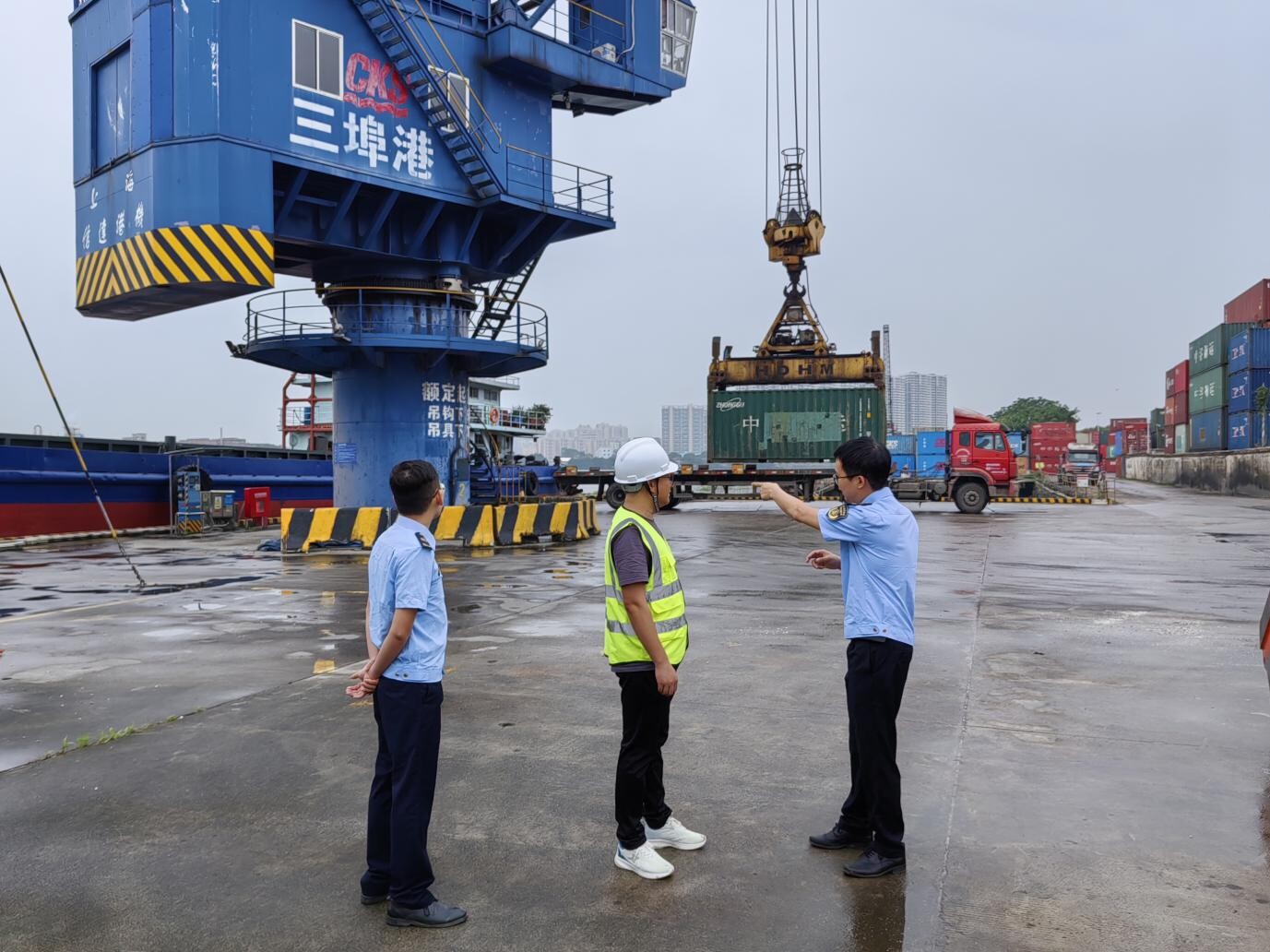 严格港口码头检查,保障水上交通安全。对奔达、沙冈泰运、裕洋、运通和中油等5间港口码头企业开展节日督导检查,确保“五一”节假日期间安全生产工作有序开展。一是通报梅州梅大高速塌方造成的重大伤亡惨痛教训,要求企业落实安全生产主体责任,举一反三,落实港口基础设施隐患排查;二是督促企业加强汛期安全隐患排查,保障港口装卸安全营运;三是重点关注天气预警信息,对突发性天气变化做好研判工作,在恶劣天气环境下,及时做好码头停工工作;四是严格落实源头治超管理工作,做好车辆标载出场核查记录台账工作。