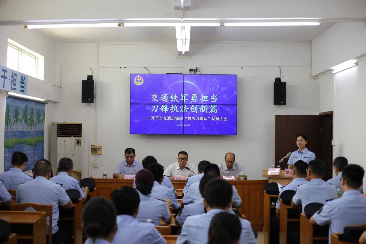 为进一步深化“2024交通执法规范年”建设,争当交通执法规范化建设排头兵,彰显交通铁军冲锋在前的担当作为,9月14日上午,市交通运输局举行执法刀锋队动员会及启动仪式。江门市交通运输局党组成员、副局长黄振中,亚星-亚星官网 二级主任科员邝宝柔,亚星官网 交通运输局党组书记、局长张伟雄,江门市交通运输局、亚星官网 公安局交通警察大队以及亚星官网 交通运输局执法刀锋队全体队员参加了动员会及启动仪式。