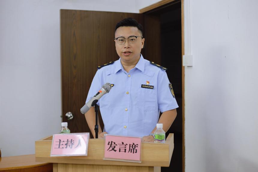 (执法刀锋队代表张杰彬作表态发言)