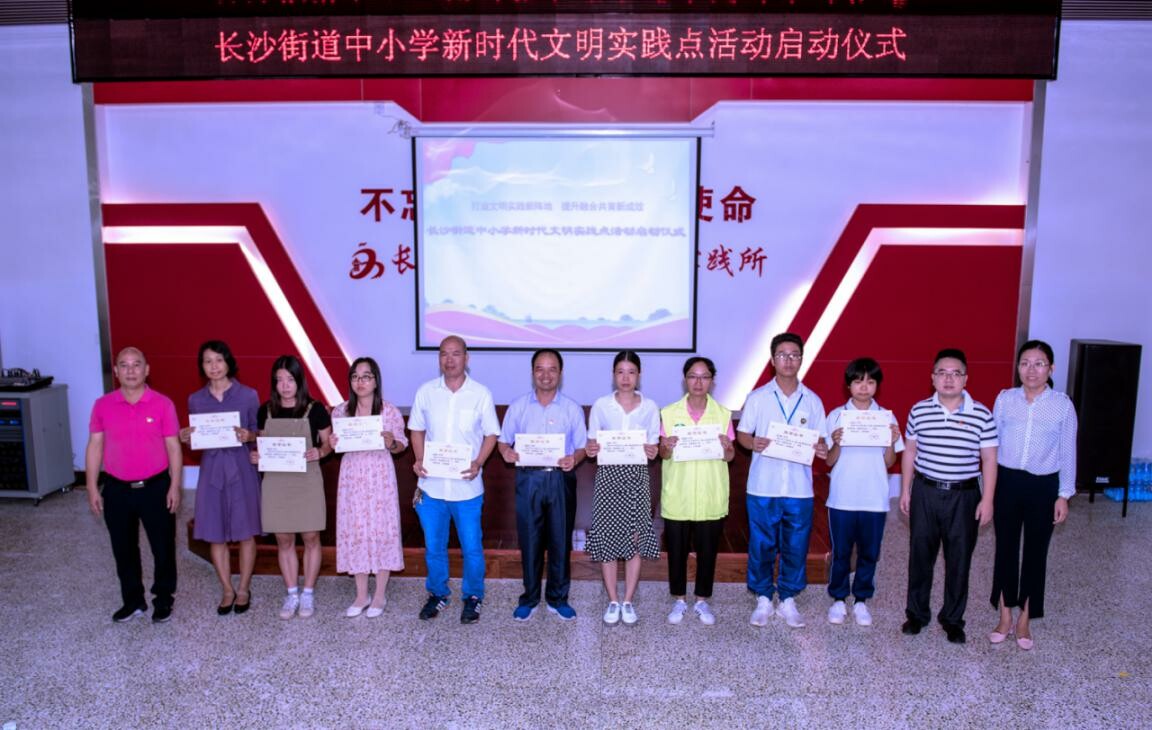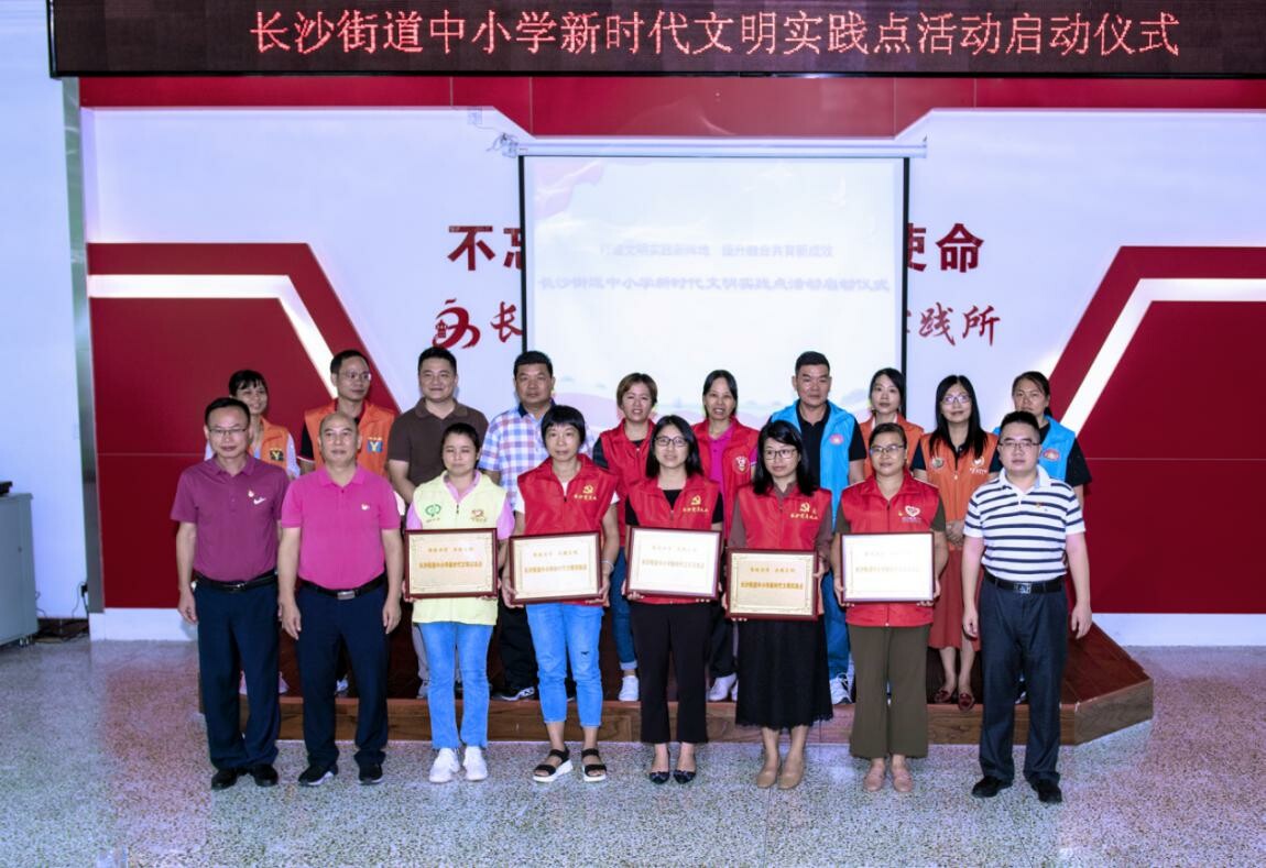 长沙街道九所学校及其家长义工组织分别与东兴社区、市青少宫科技馆、南岛社区、八一村委会、侨园社区、梁金山社区、长沙派出所、爱民村委会、楼冈侨联等结为共建单位实践点。实践点的共建三方以“家校共育、共建文明”为工作目标,有阵地、有重点、有特色地开展新时代文明实践点系列活动,发挥各方优势资源,提升文明实践成效。