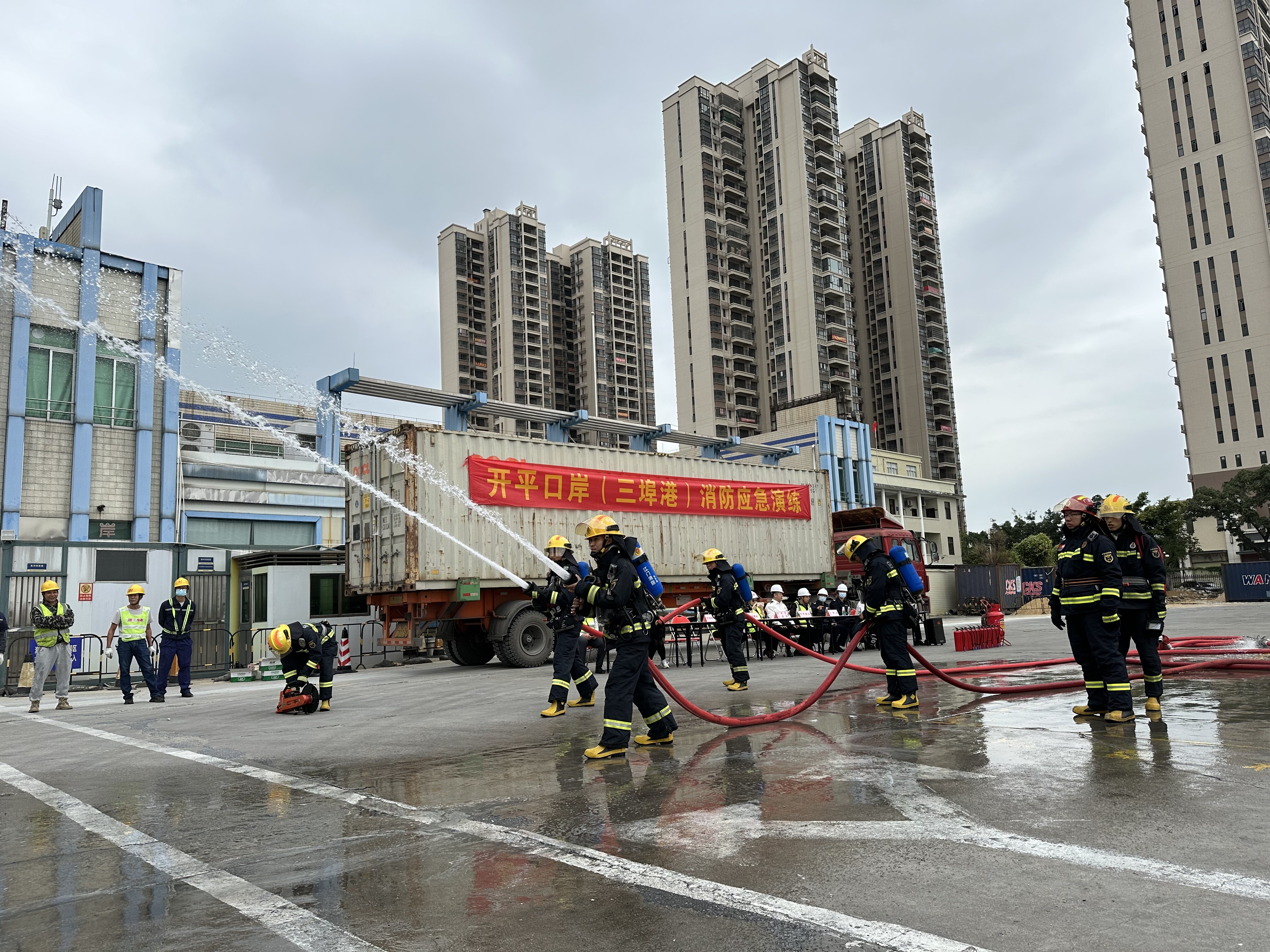 11月16日上午,亚星官网 科工商务局张娉婷副局长带队联合亚星 海关、亚星 海事处等口岸查验单位到三埠港口岸现场参加三埠港2023年消防应急演练,指导广东省三埠港客货运输合营有限公司加强港区消防安全管理,确保应急处置工作迅速、高效、有序,切实保障港区员工的人身安全和财产安全。