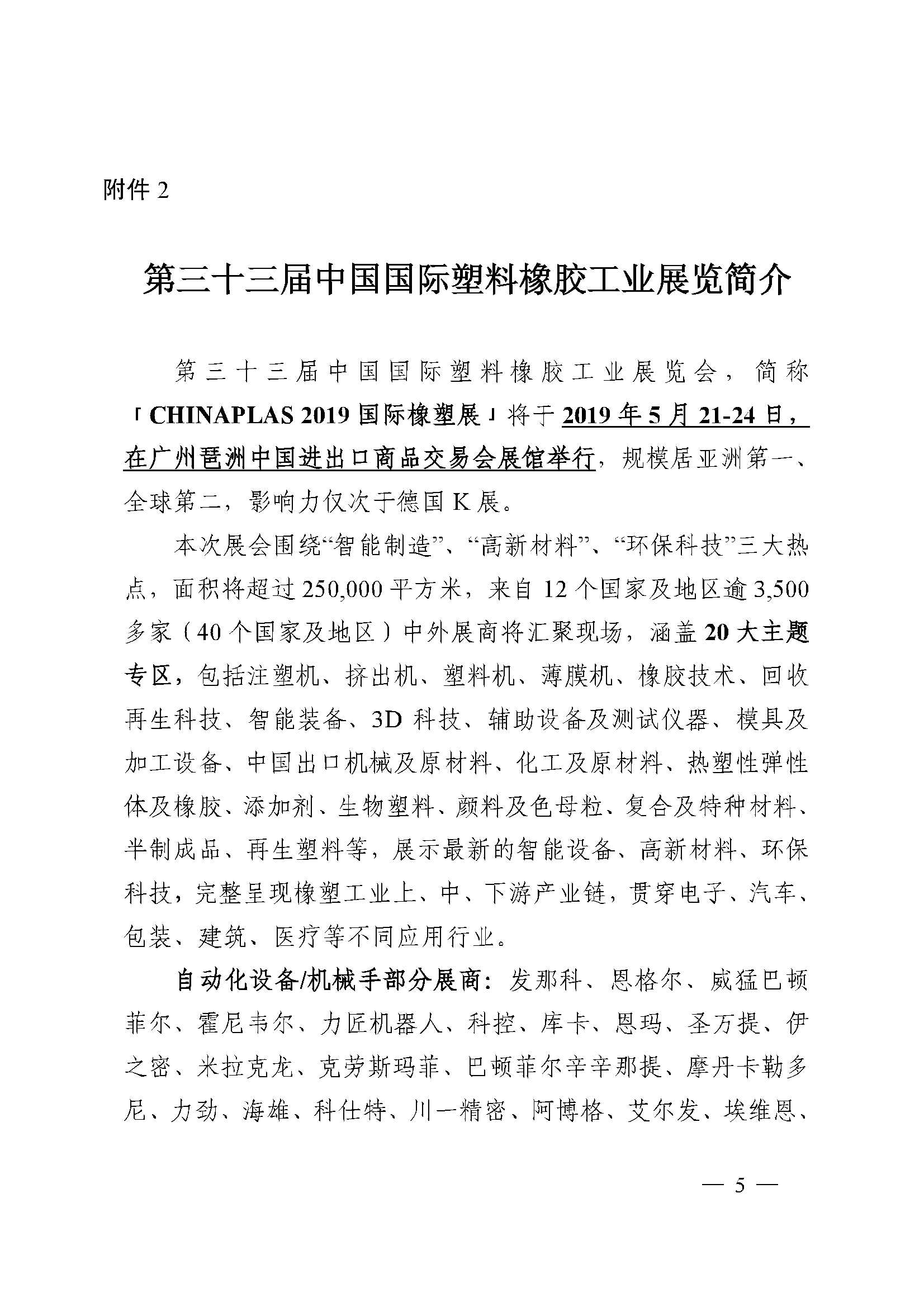 转发关于组织企业参观第33届中国国际塑料橡胶工业展览会的通知