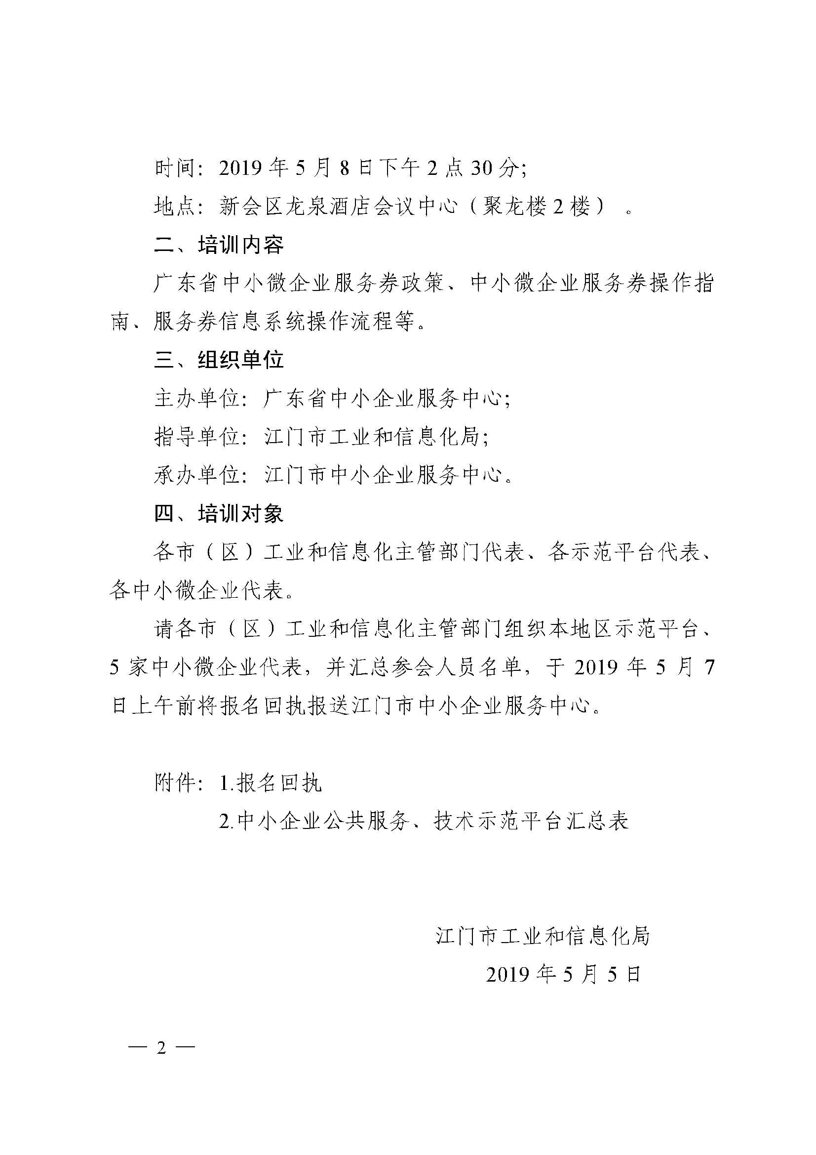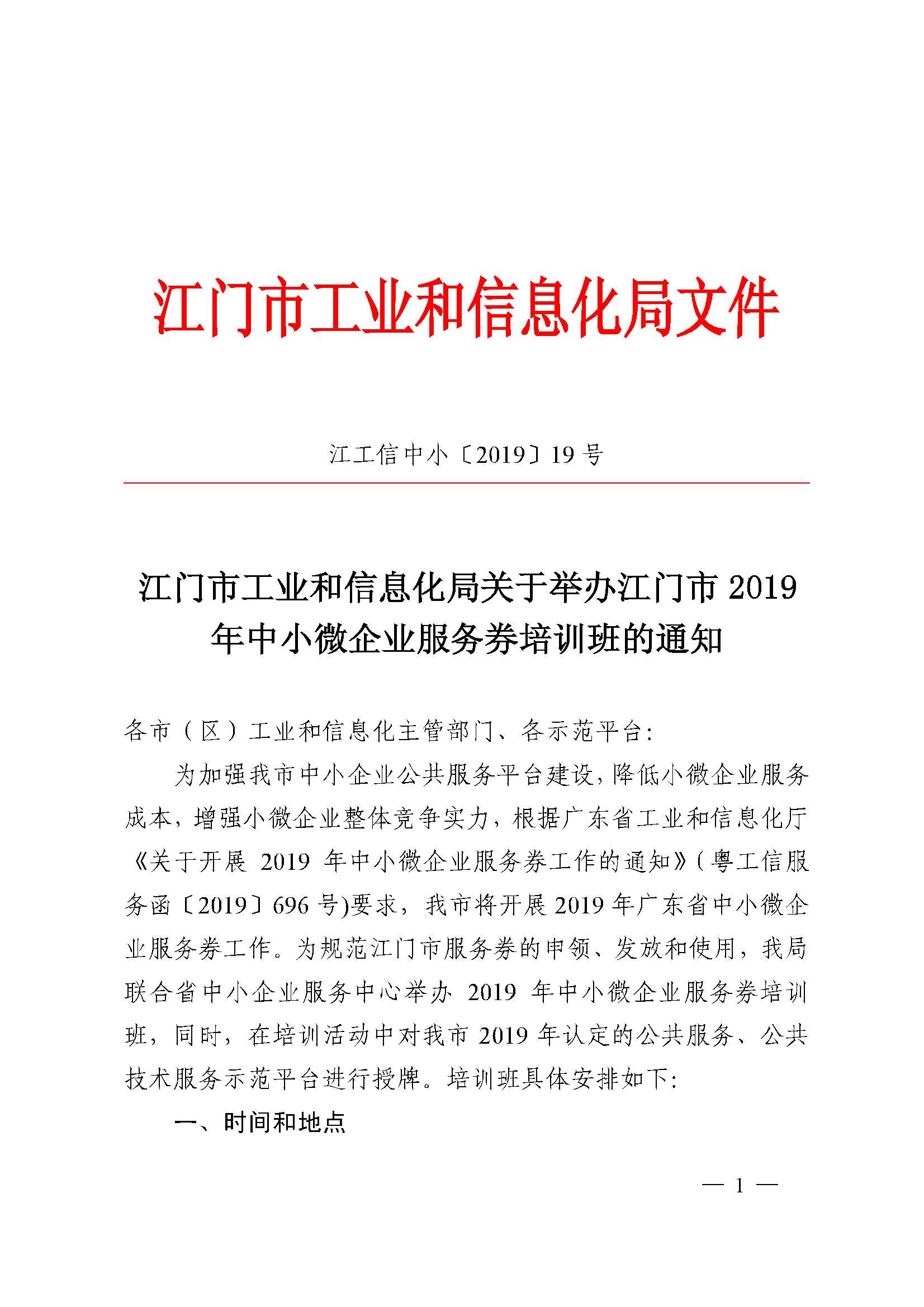 转发江门市工业和信息化局关于举办江门市2019年中小微企业服务券培训班的通知