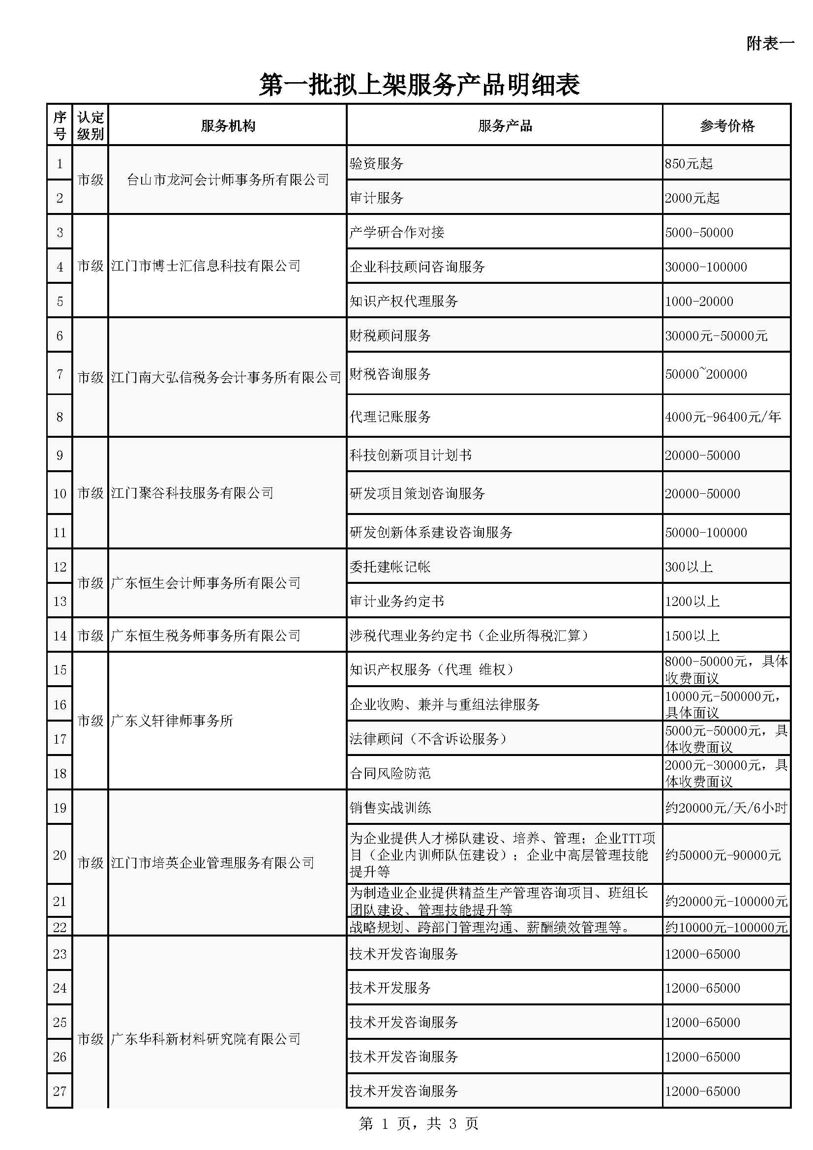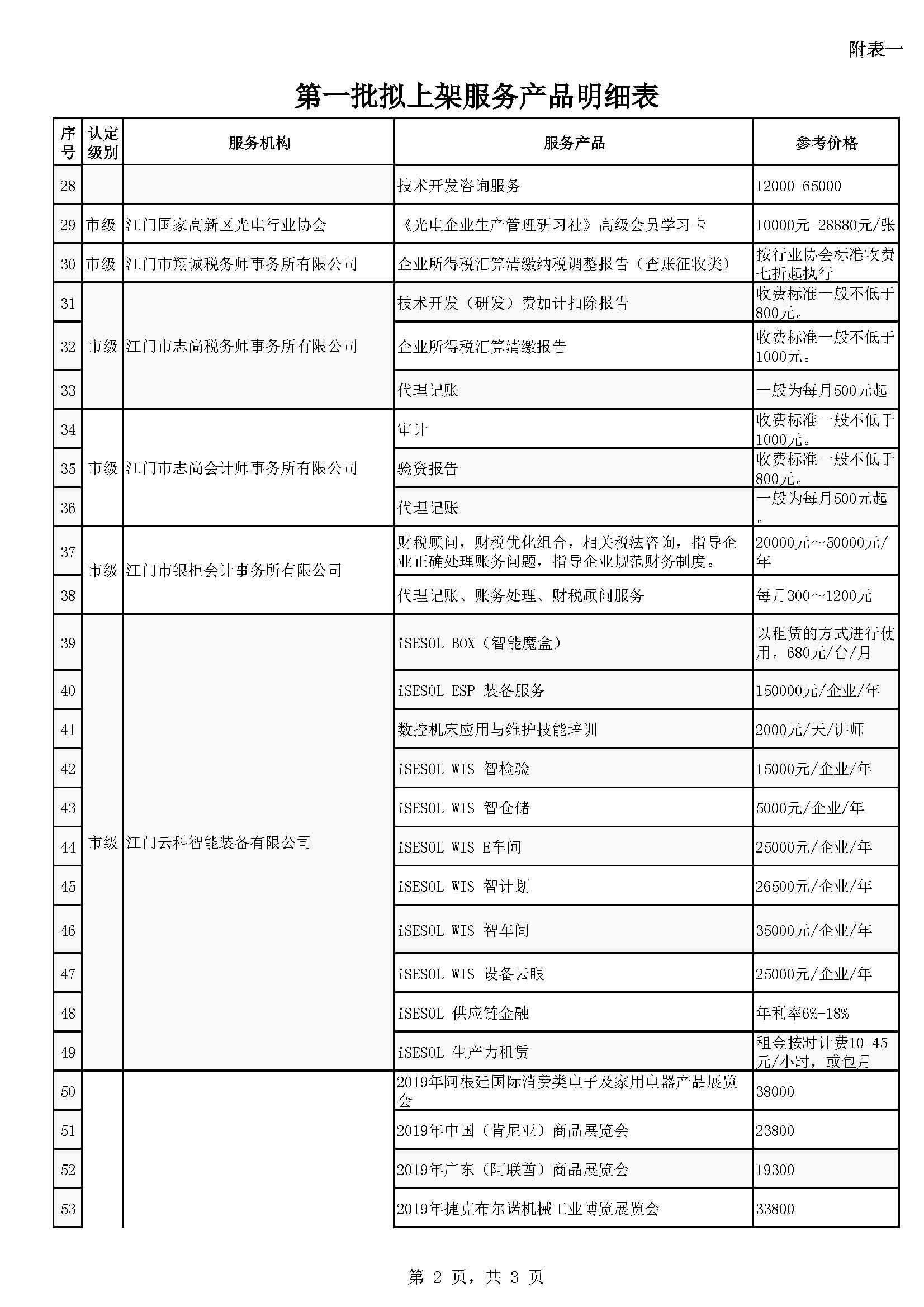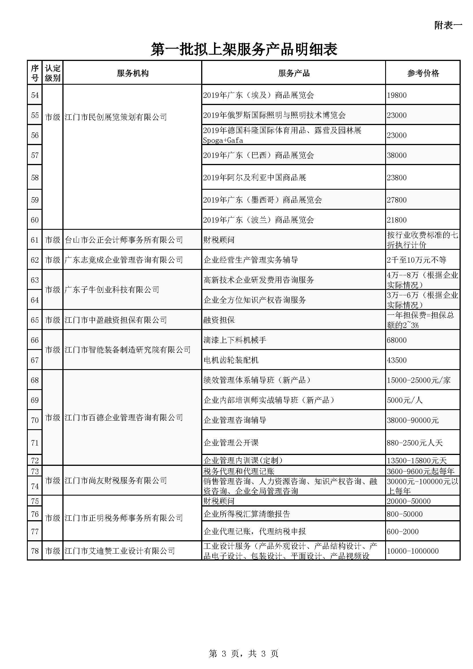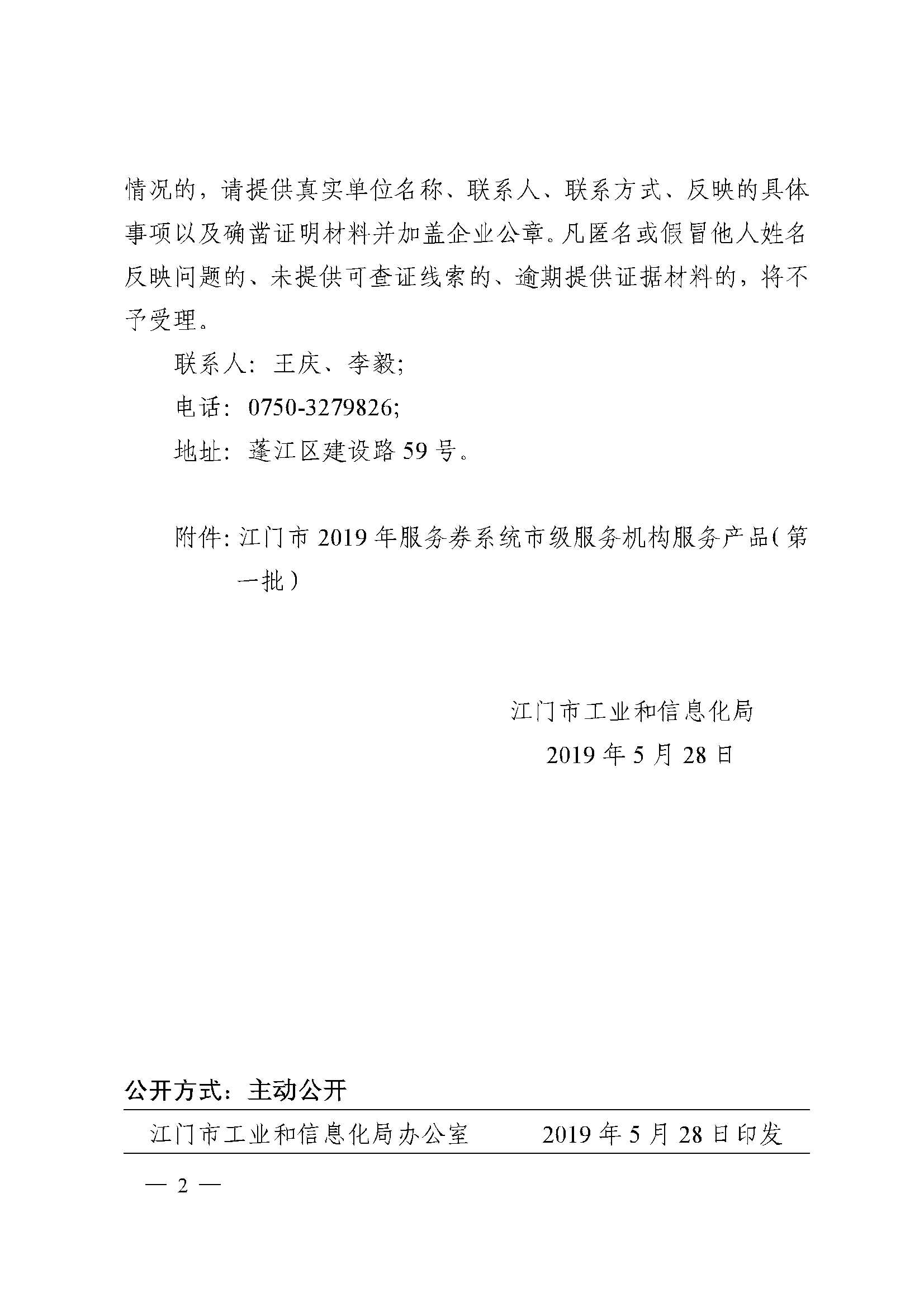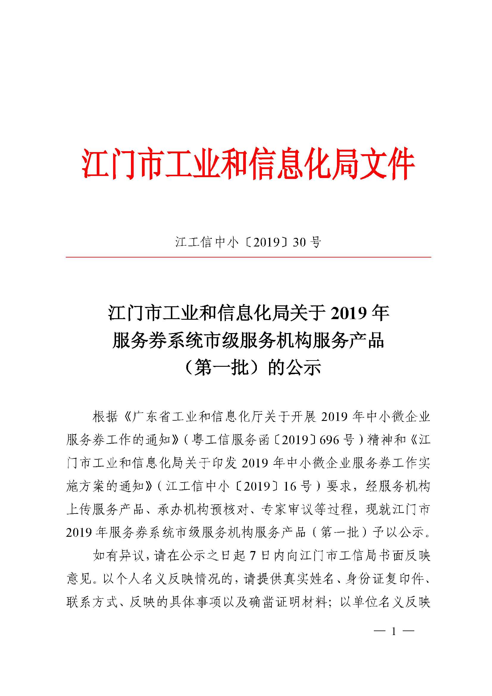 江门市工业和信息化局关于2019年服务券系统市级服务机构服务产品(第一批)的公示.