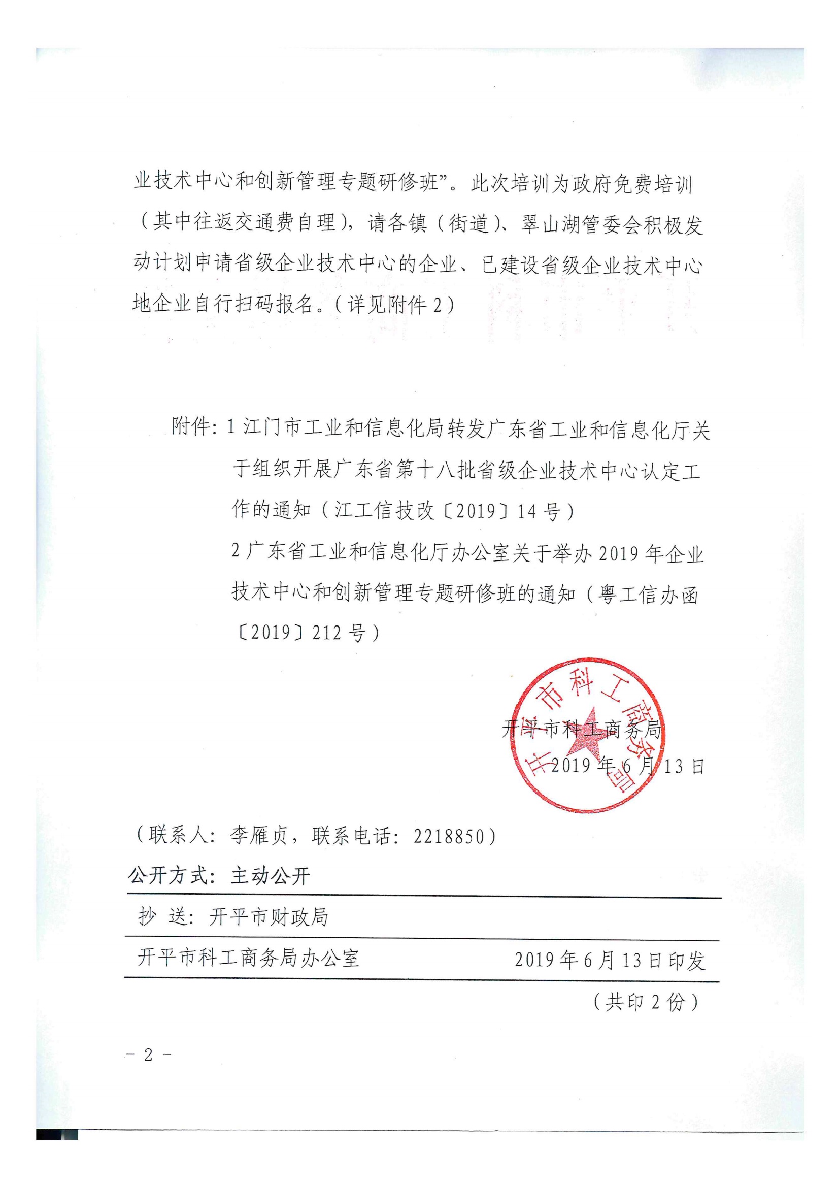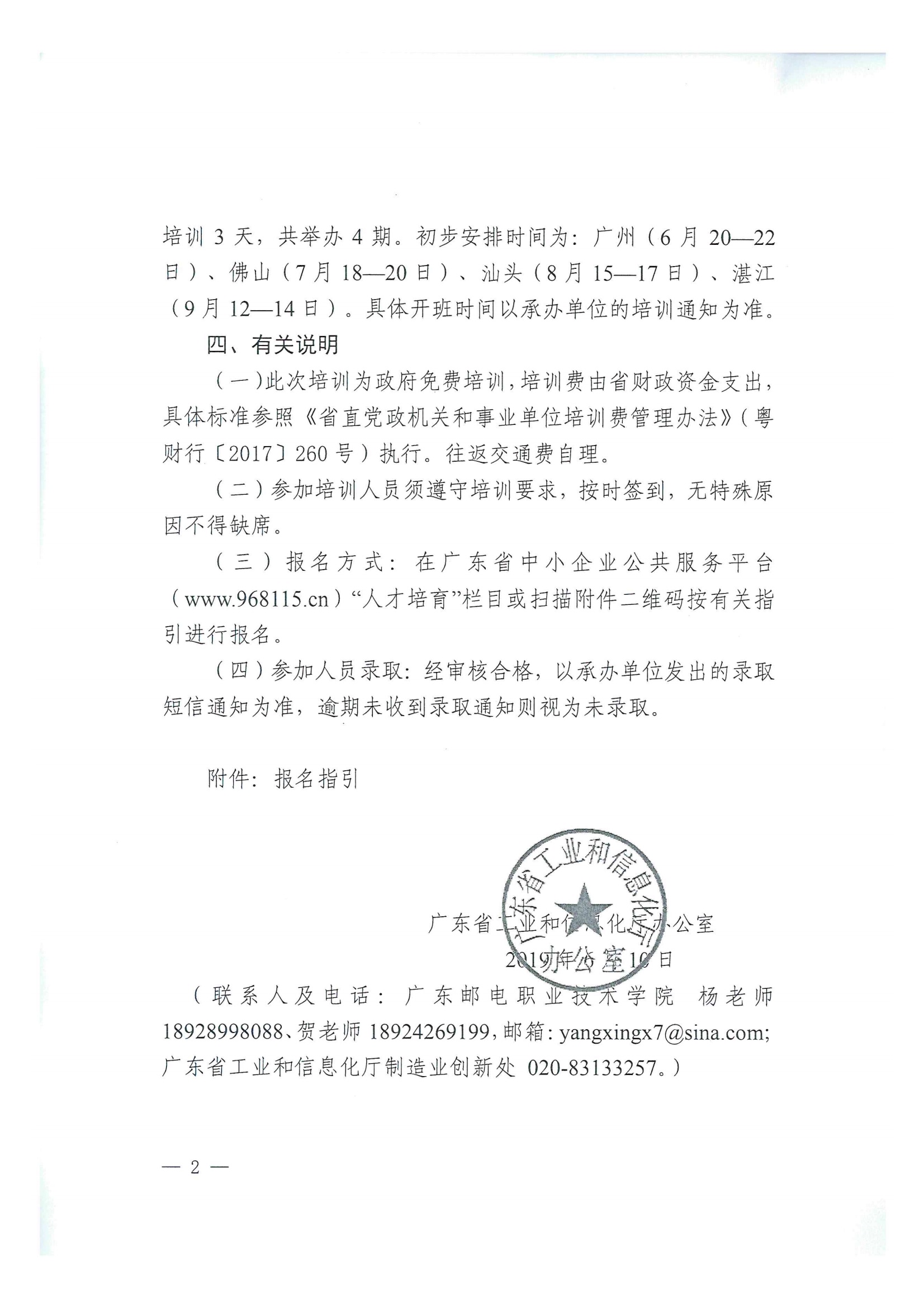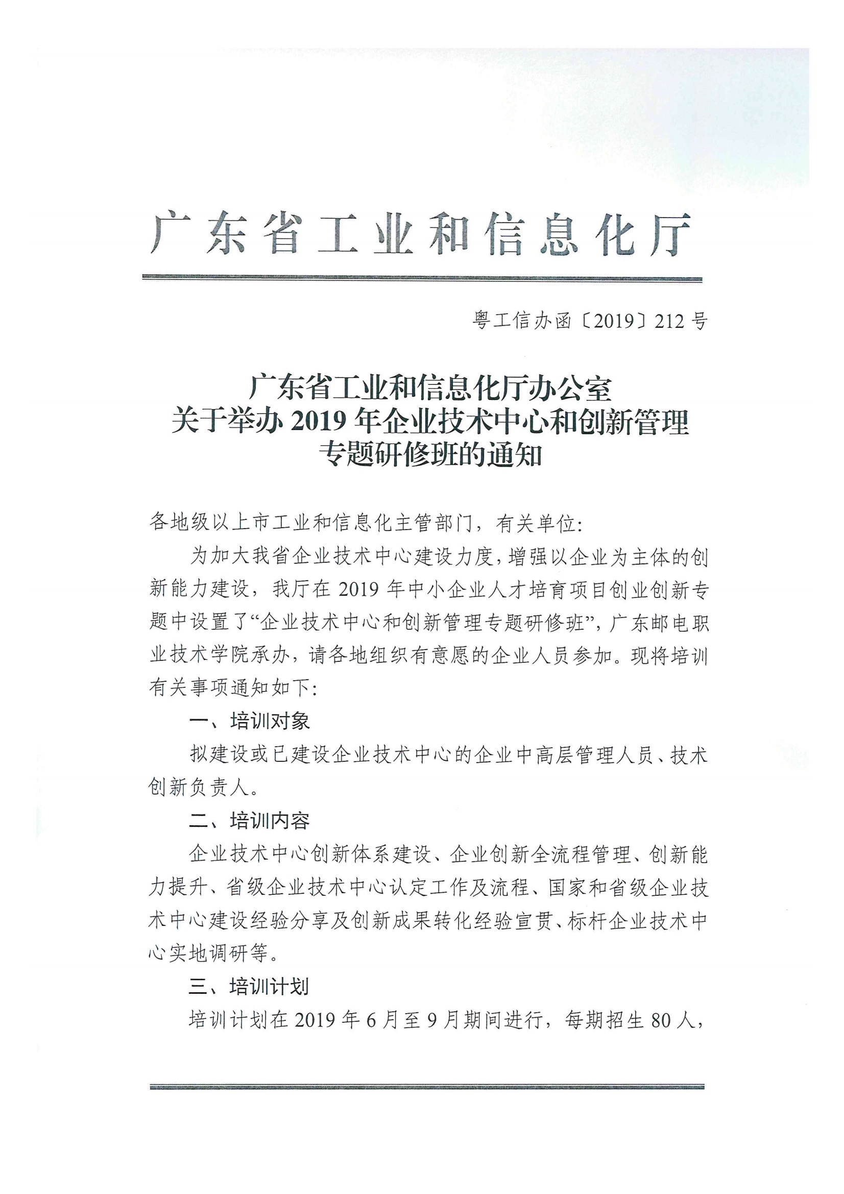 附件 2:广东省工业和信息化厅办公室关于举办2019年企业技术中心和创新管理专题研修班的通知(粤工信办函〔2019〕212号)