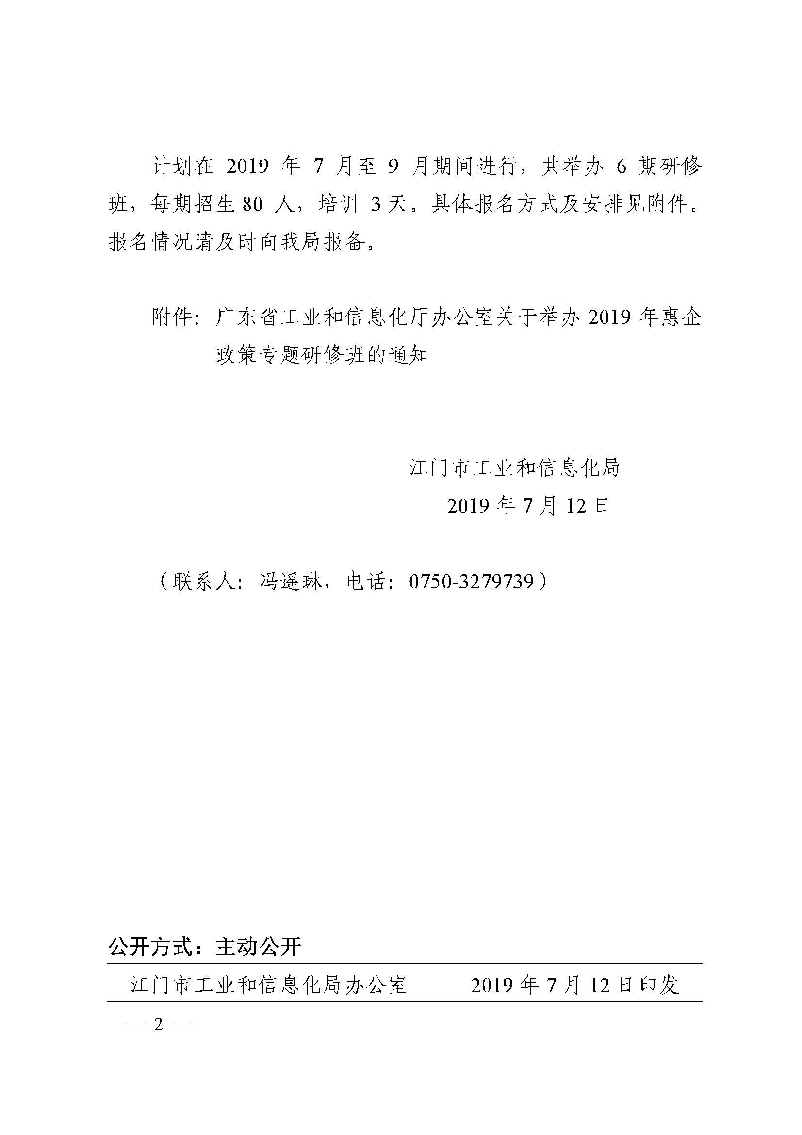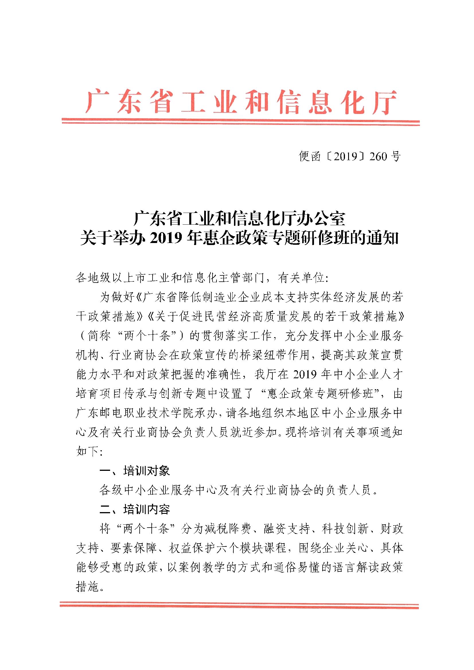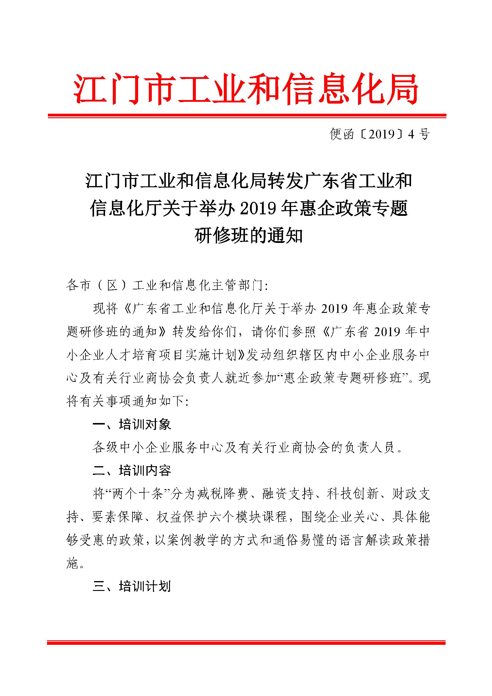 转发江门市工业和信息化局转发广东省工业和信息化厅关于举办2019年惠企政策专题研修班的通知