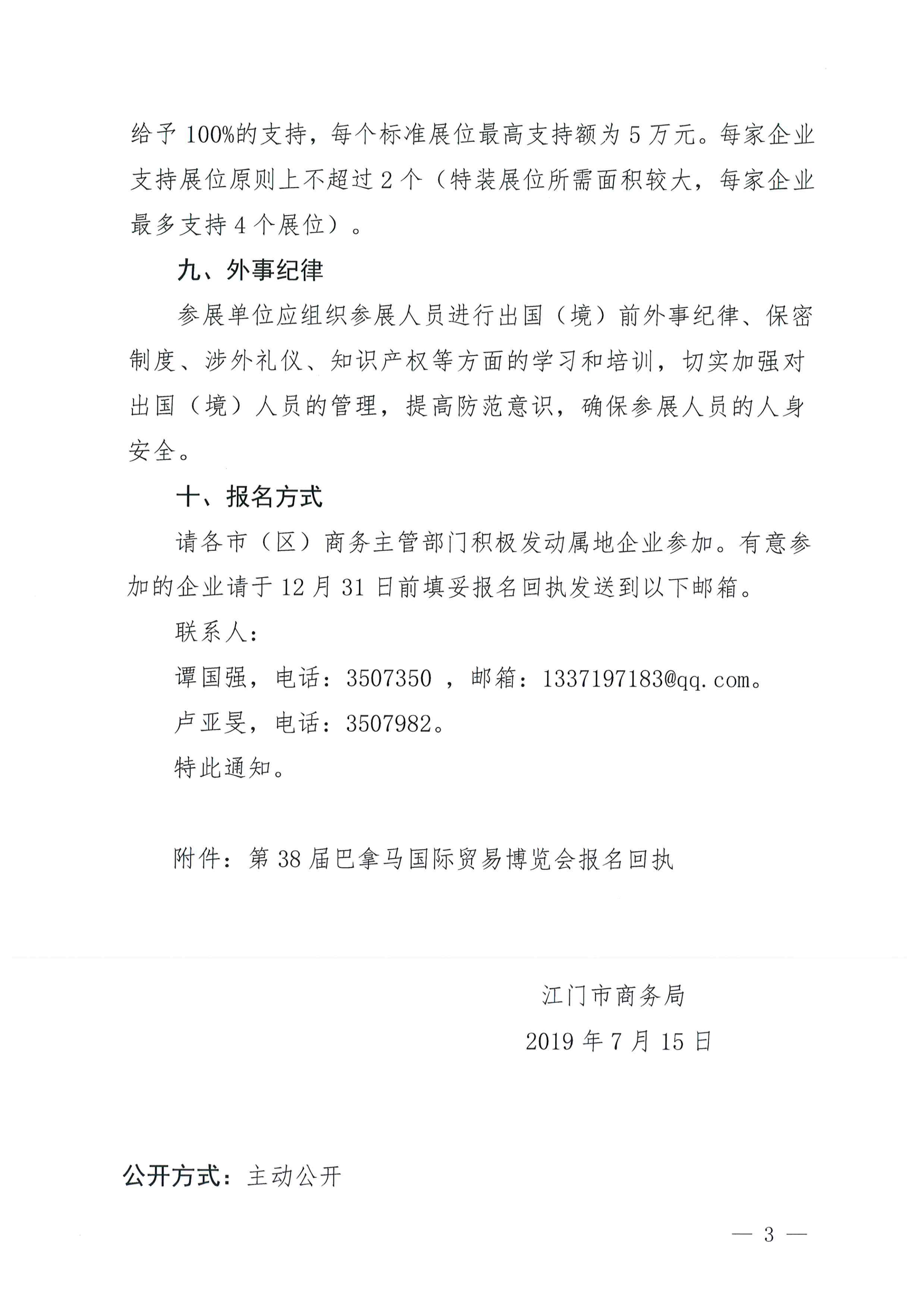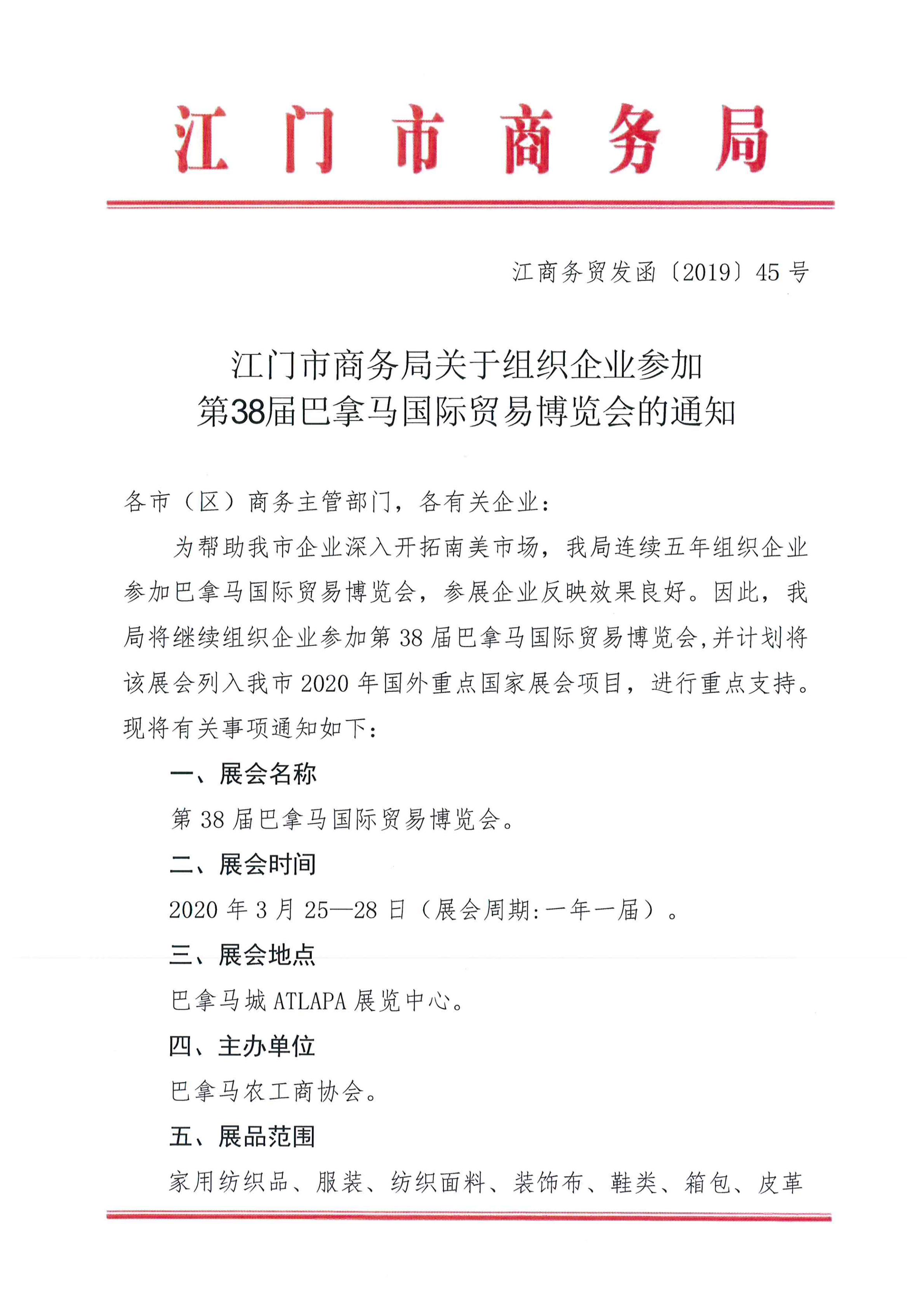 江门市商务局关于组织企业参加第38届巴拿马国际贸易博览会的通知