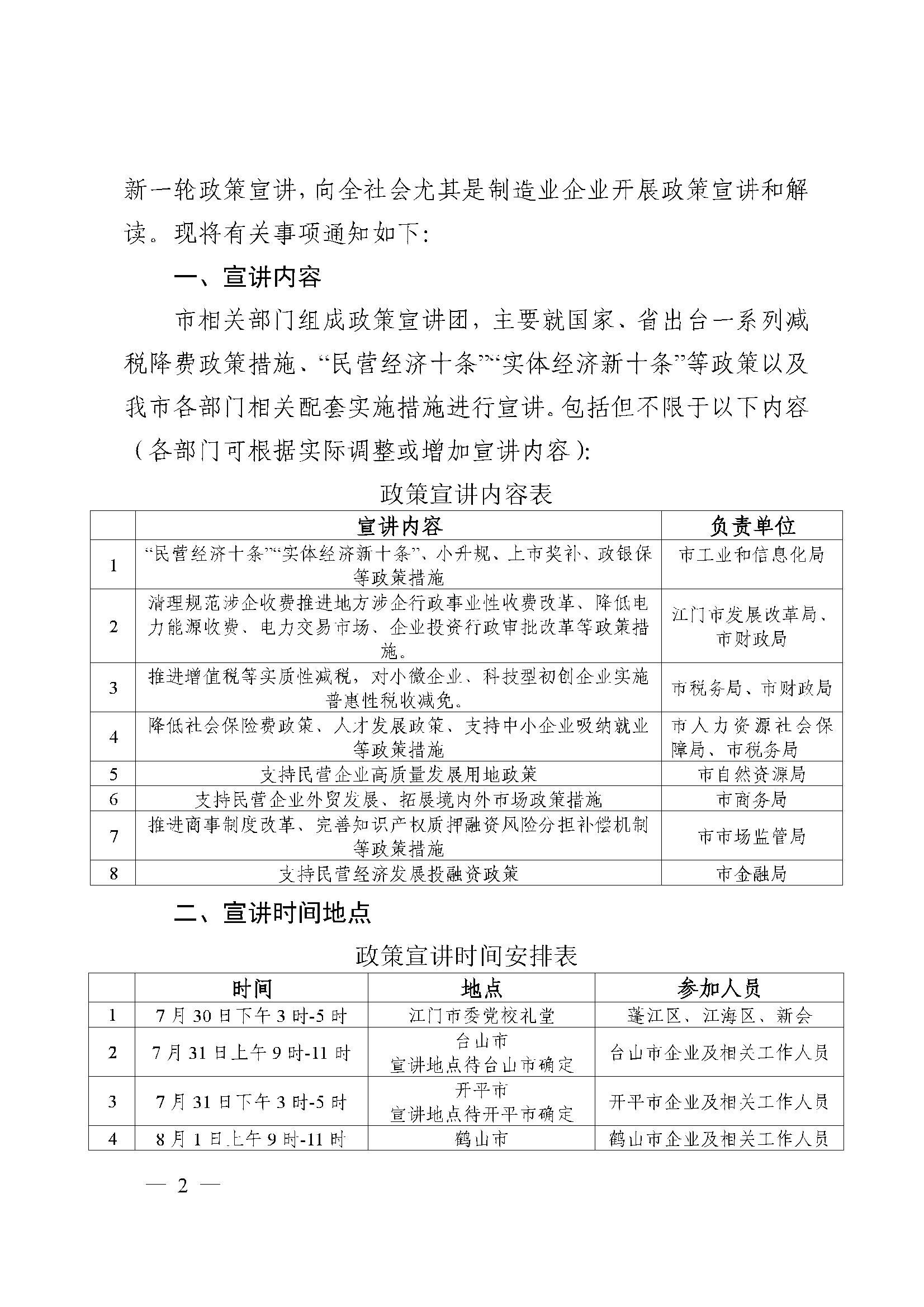 转发江门市促进中小企业(民营经济)发展工作领导小组办公室关于开展“民营经济”“实体经济新十条”等政策宣讲工作的通知