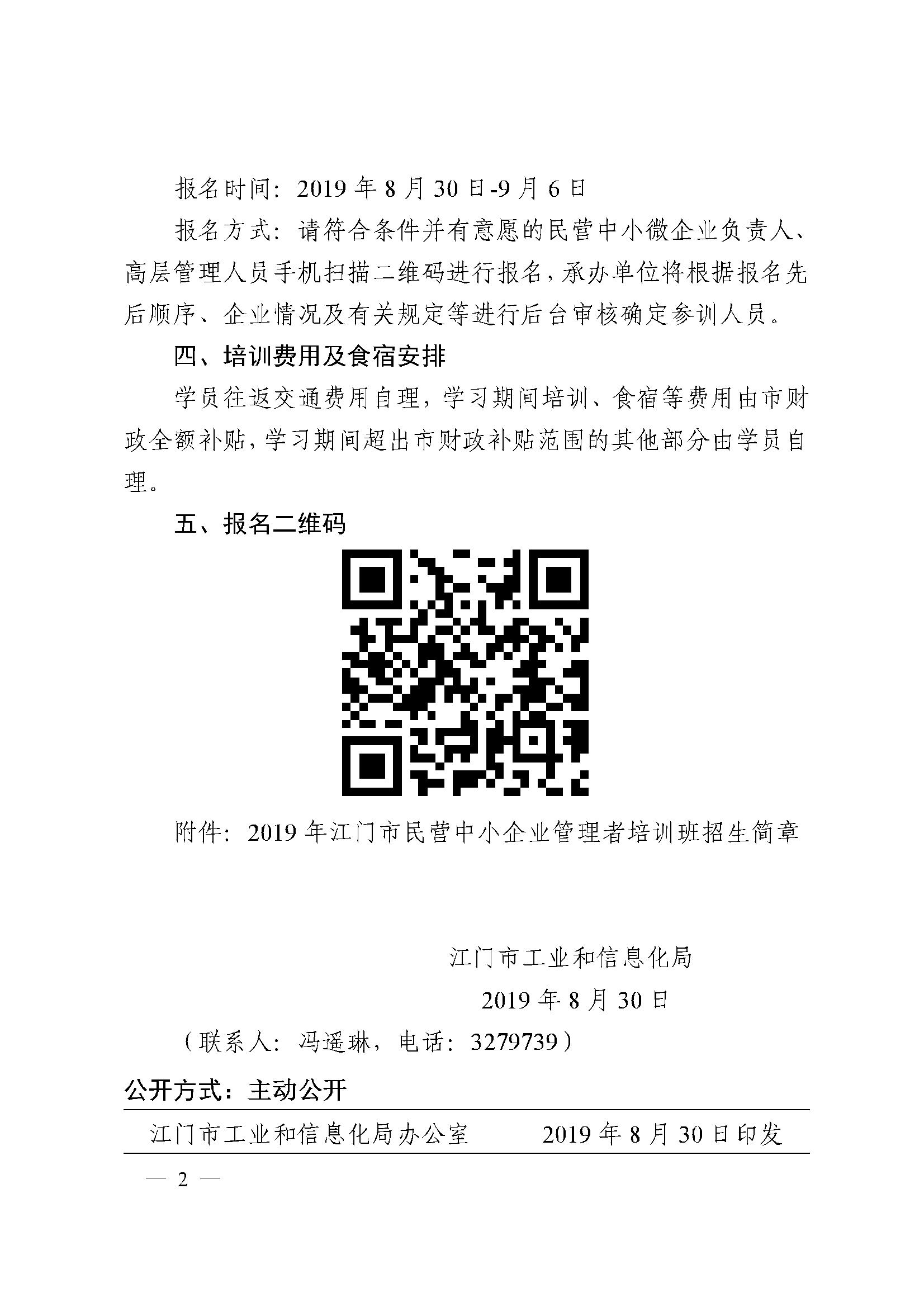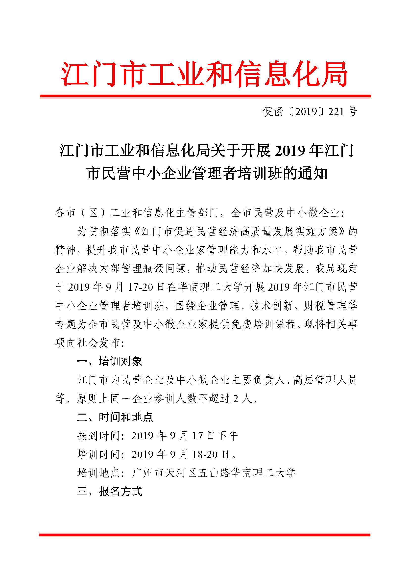 转发江门市工业和信息化局关于开展2019年江门市民营中小企业管理者培训班的通知